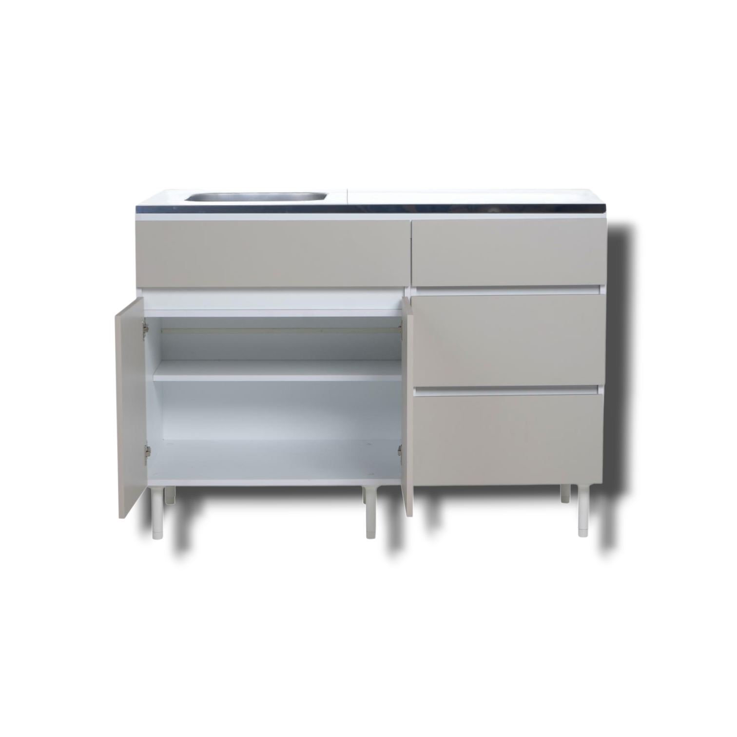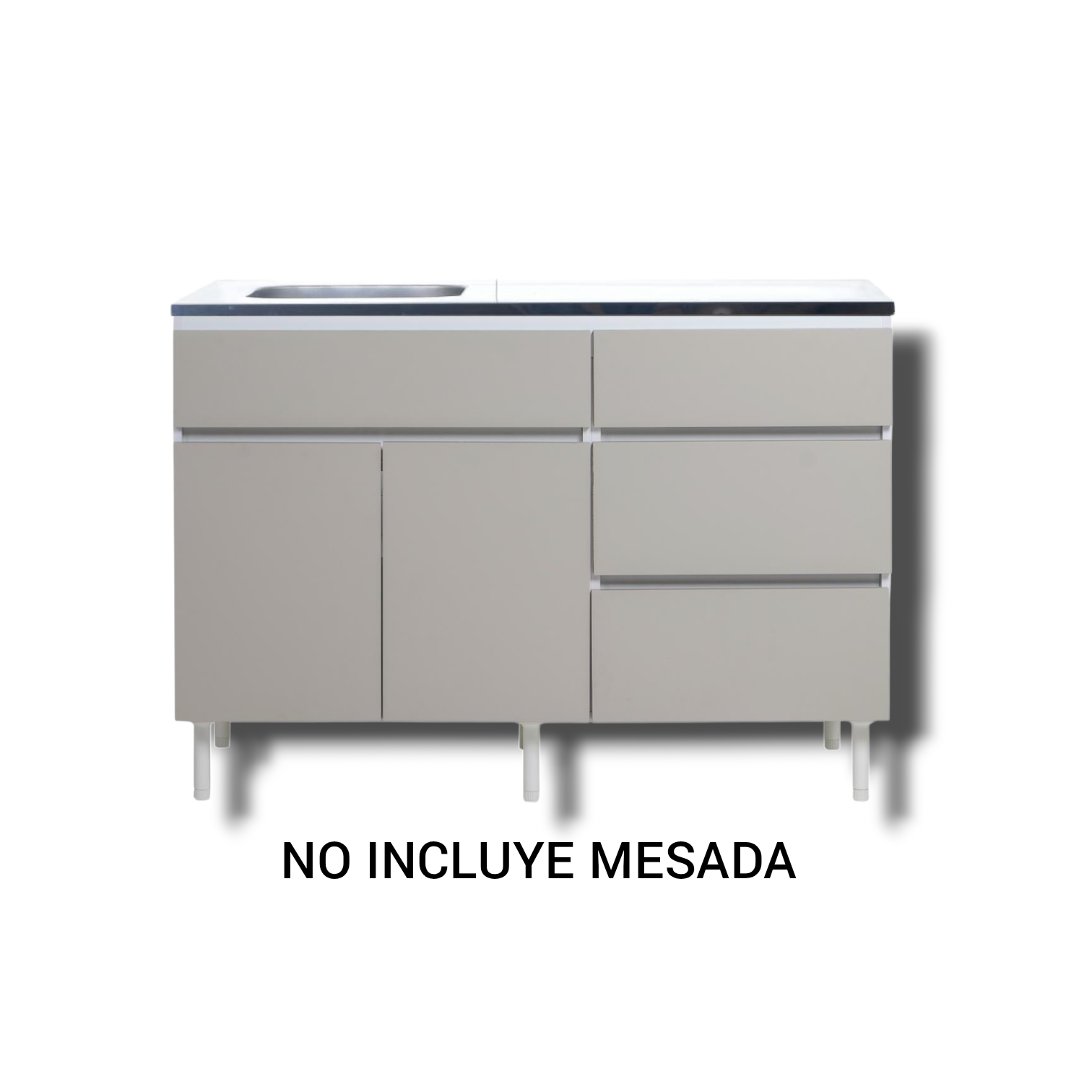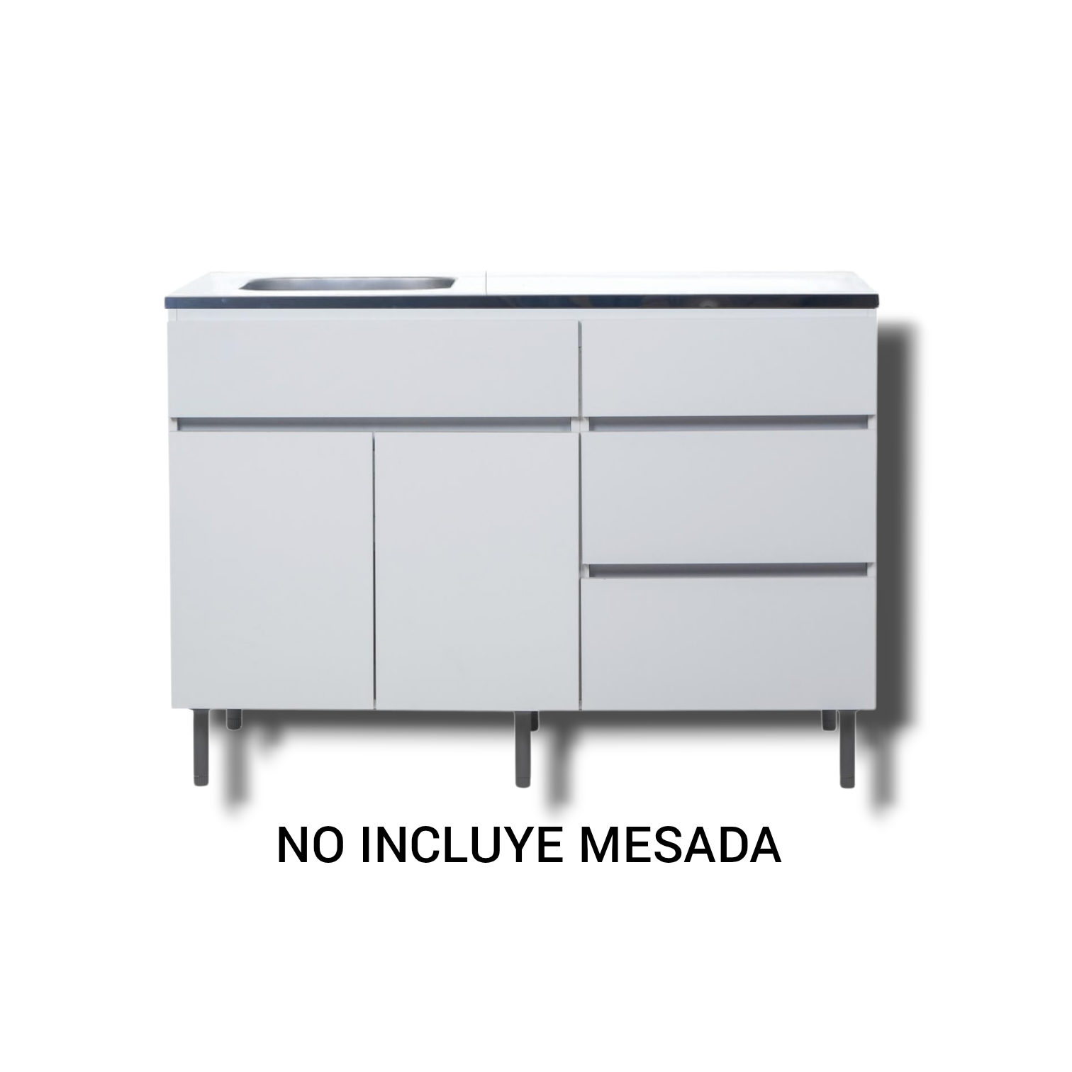 LÍNEA LIVORNO - RICHEZZE Bajo Mesada - 2 Puertas - 3 Cajones - 1 estante Mueble listo para armar, embalado en una sólida caja de cartón Incluye manual de instrucciones de armado NO INCLUYE MESADA CARACTERÍSTICAS
