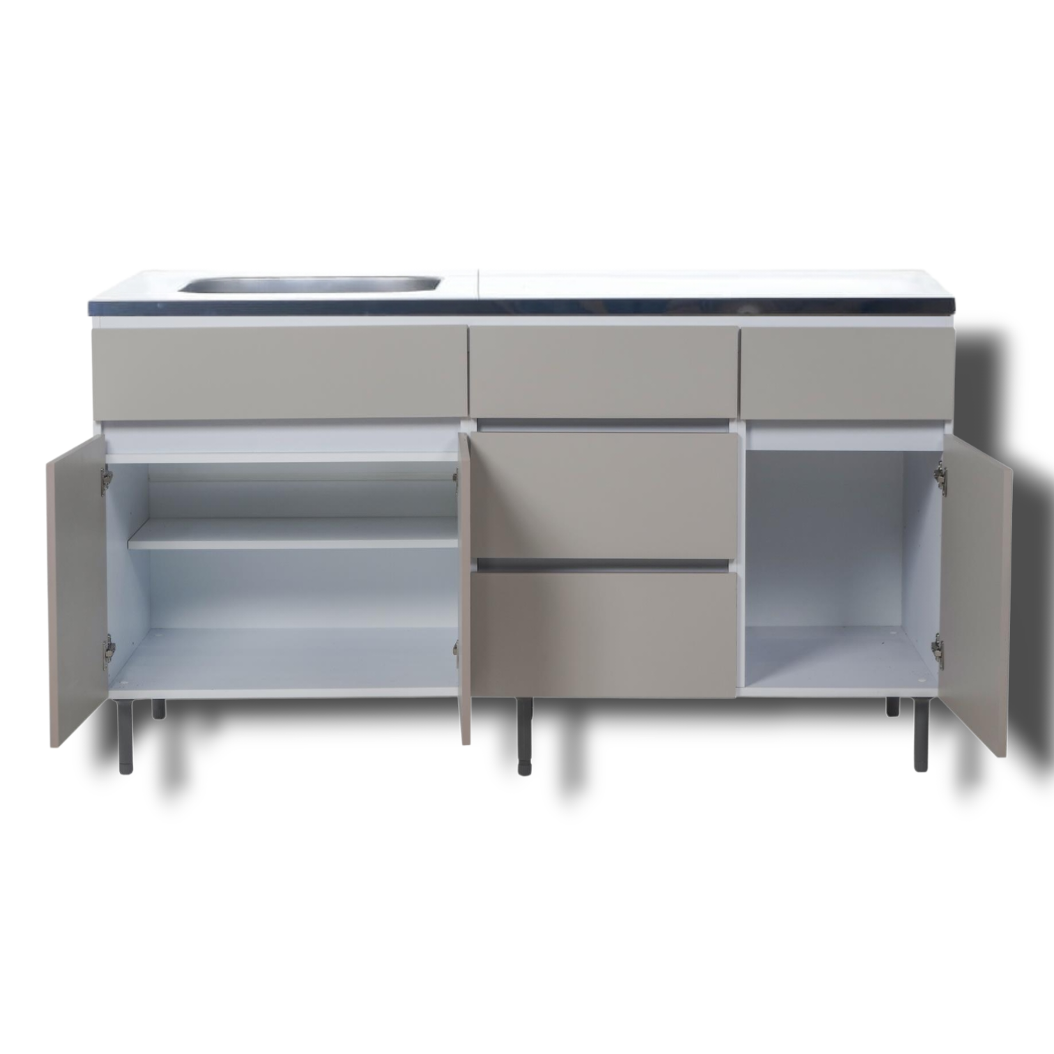 LÍNEA LIVORNO - RICHEZZE Bajo Mesada - 3 Puertas - 3 Cajones - 1 estante Mueble listo para armar, embalado en una sólida caja de cartón Incluye manual de instrucciones de armado NO INCLUYE MESADA