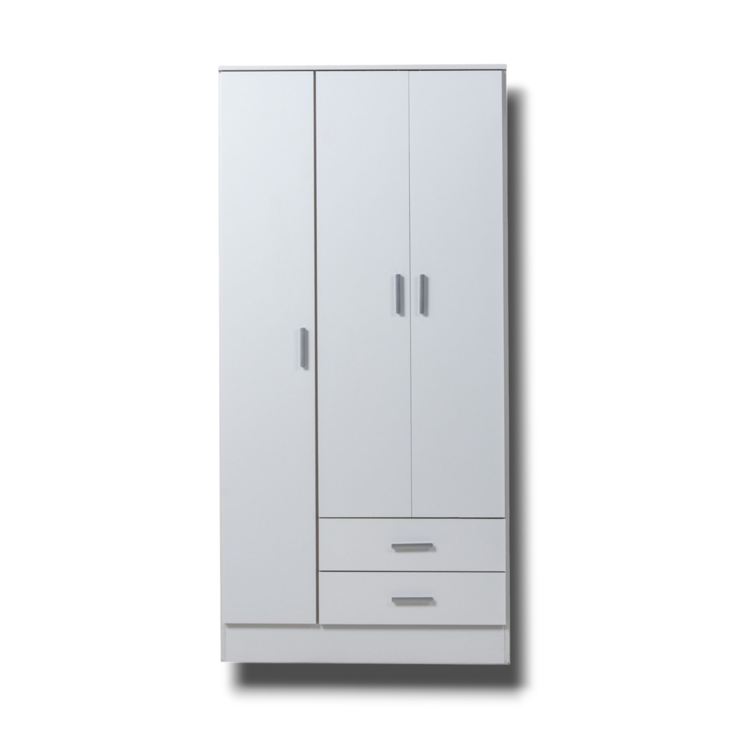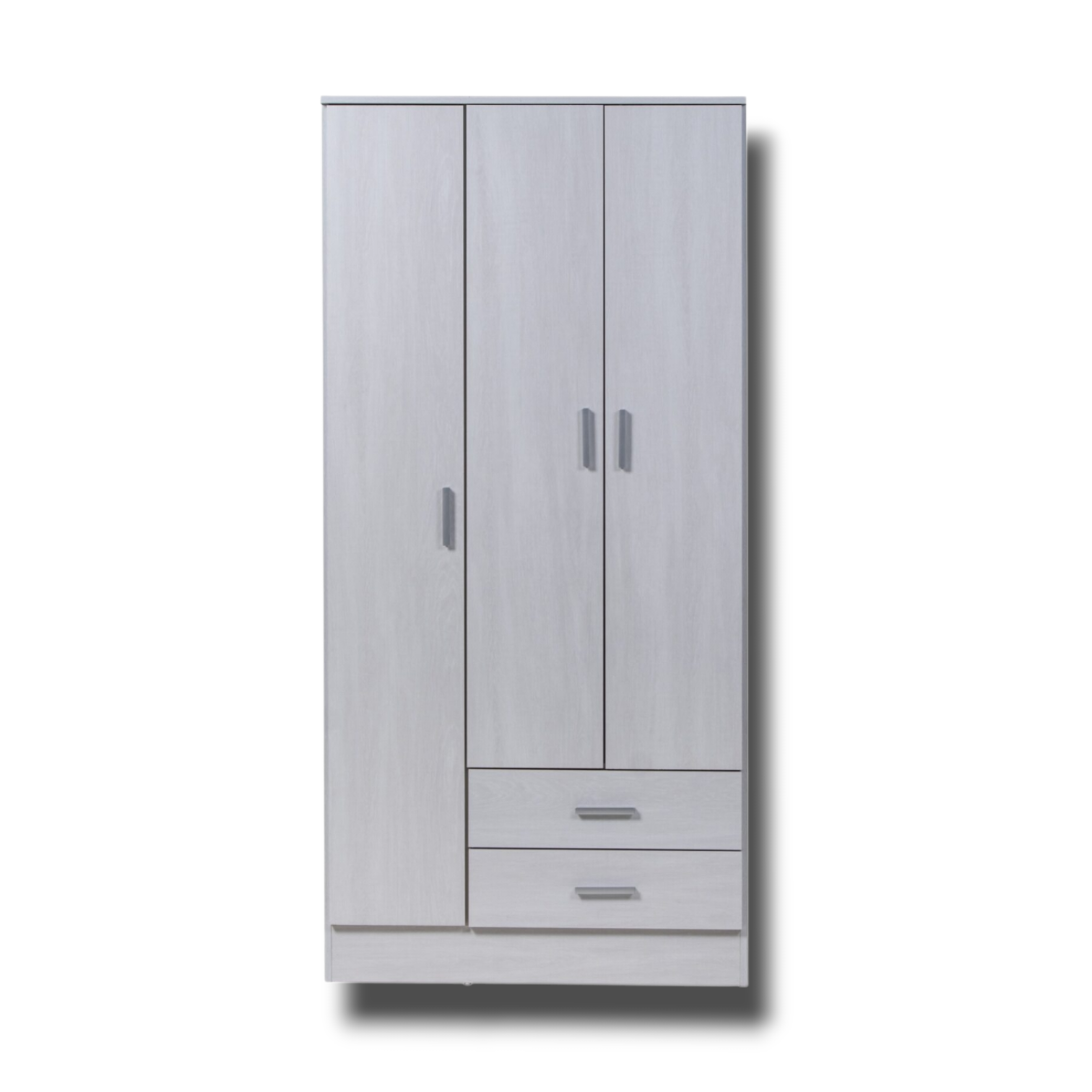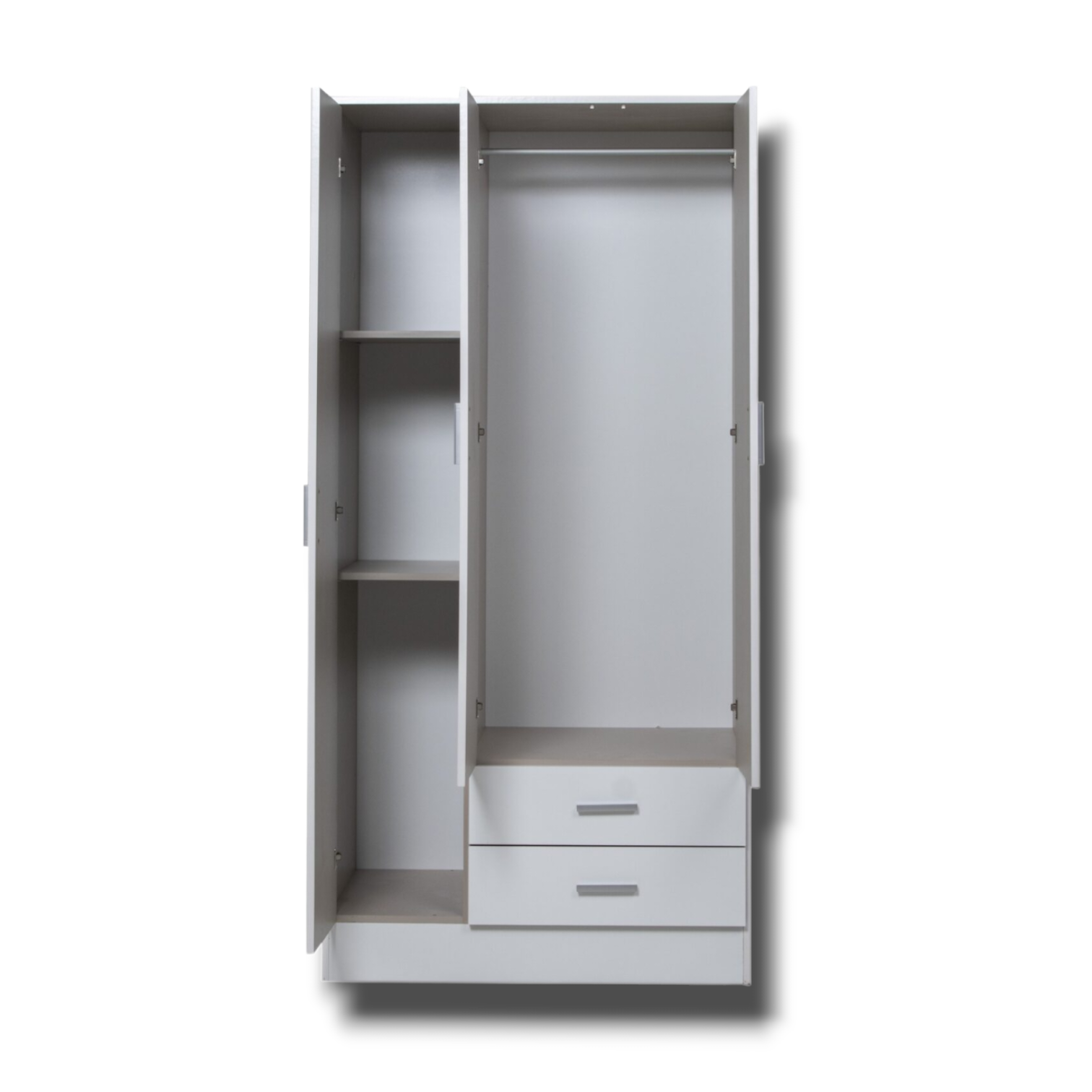 LÍNEA TANA PIU - RICHEZZE Placard - 3 Puertas de abrir - 2 Cajones - 2 Estantes - 1 Perchero Mueble listo para armar, embalado en una sólida caja de cartón Incluye manual de instrucciones de armado CARACTERÍSTICAS