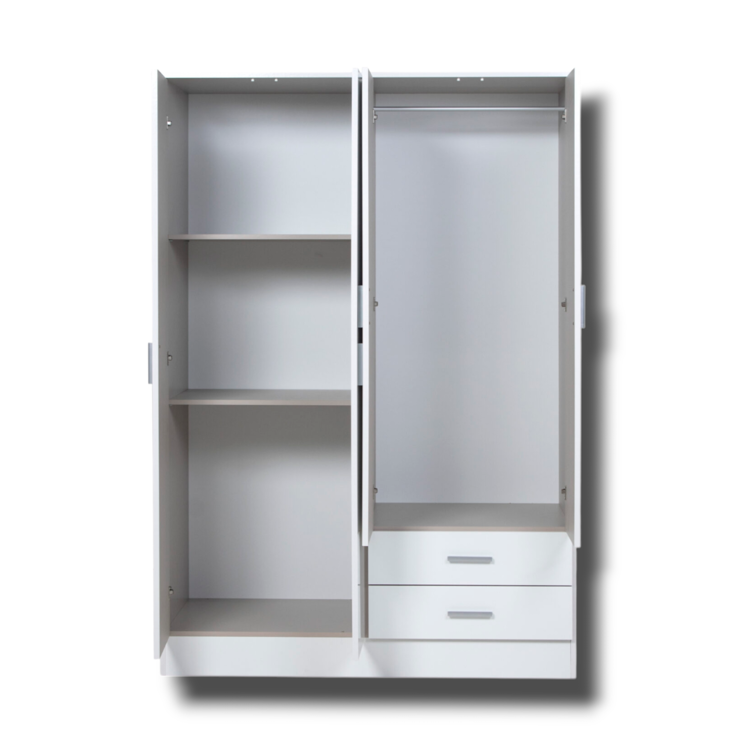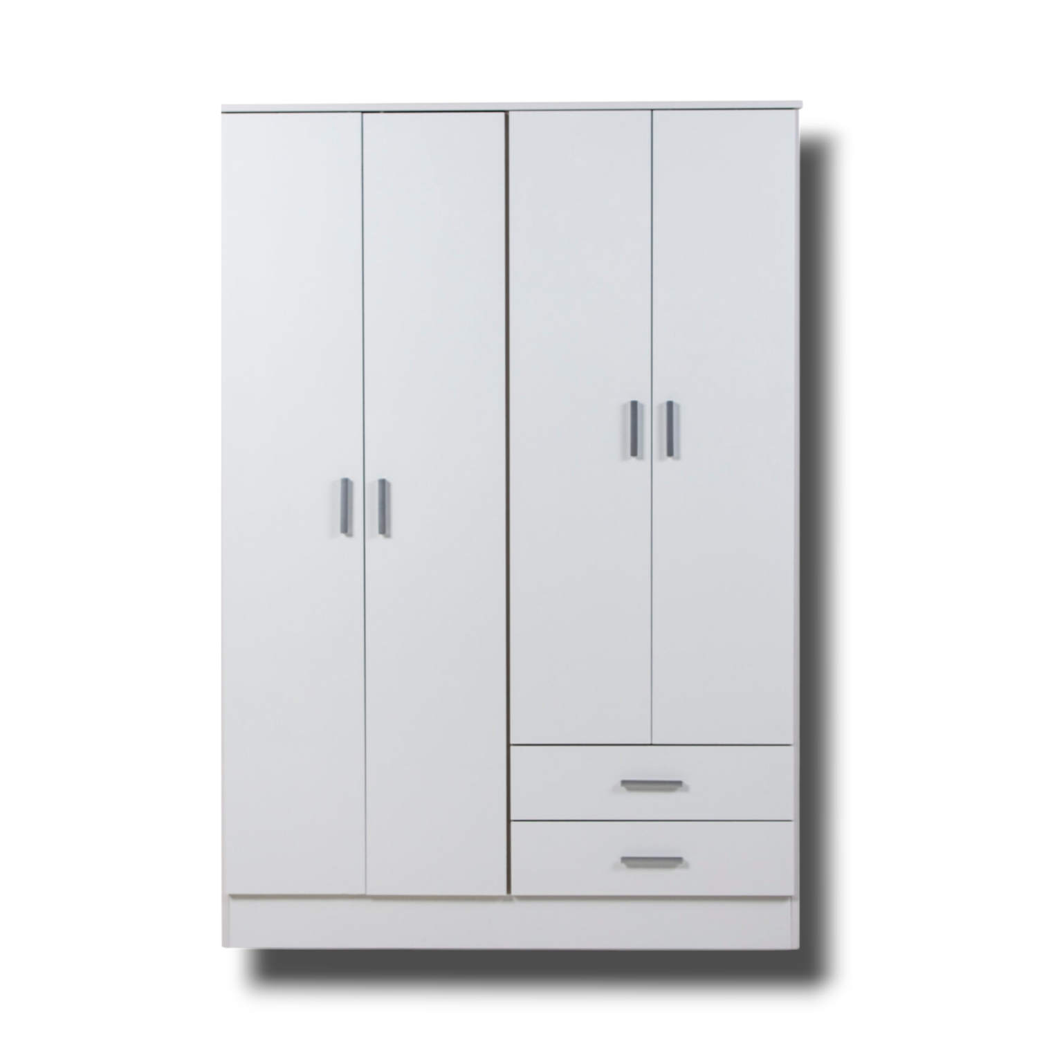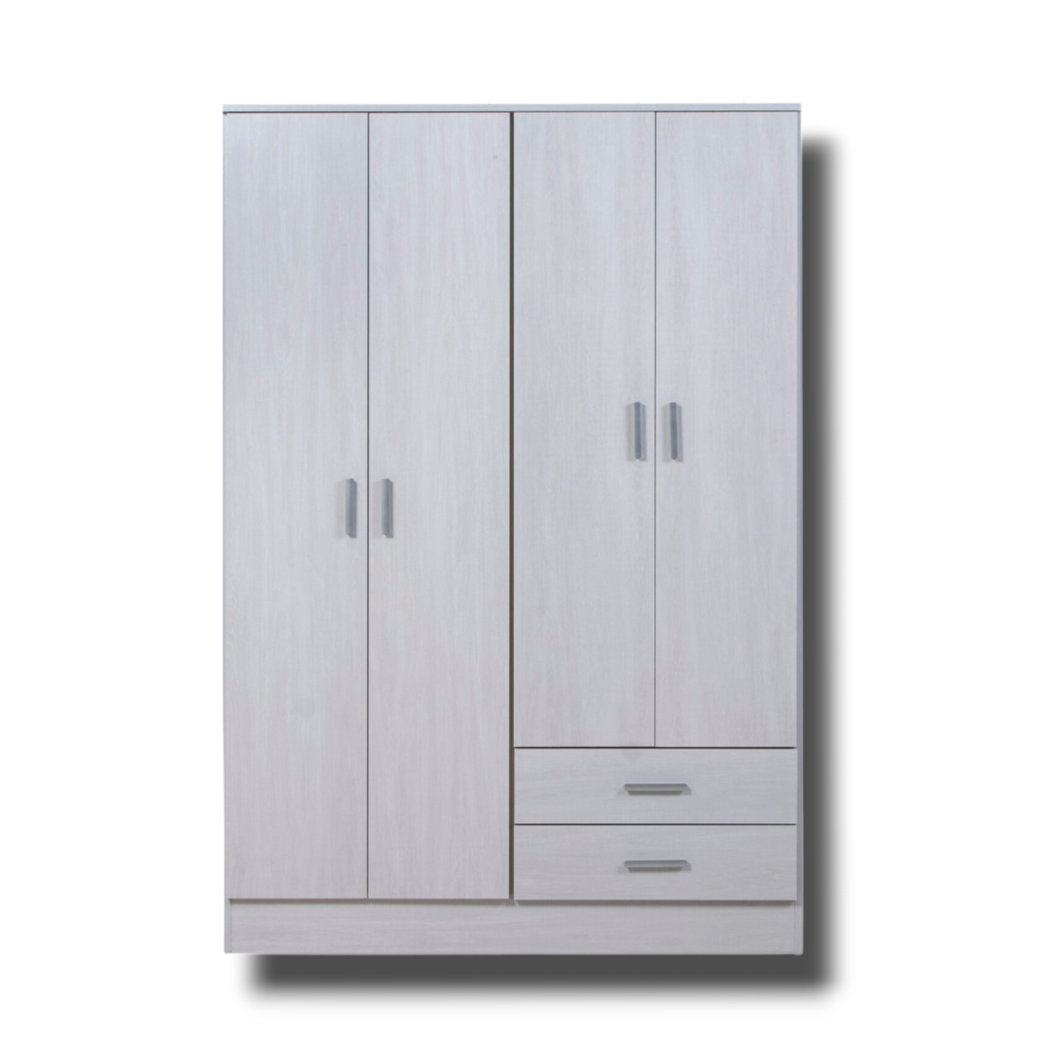 LÍNEA TANA PIU - RICHEZZE Placard - 4 Puertas de abrir - 2 Cajones - 2 Estantes - 1 Perchero Mueble listo para armar, embalado en una sólida caja de cartón Incluye manual de instrucciones de armado CARACTERÍSTICAS