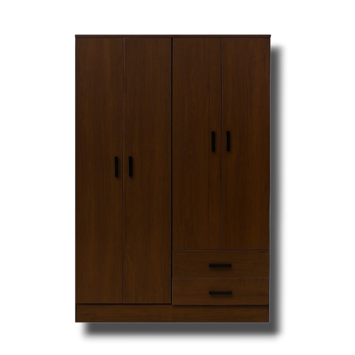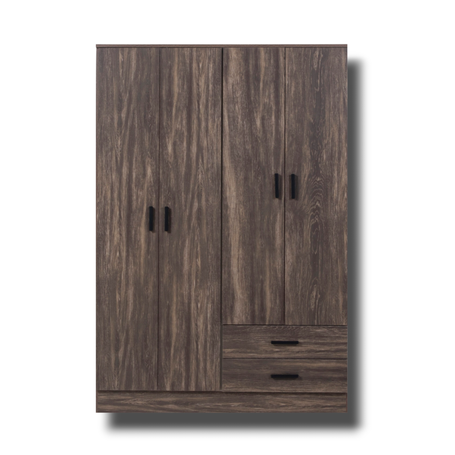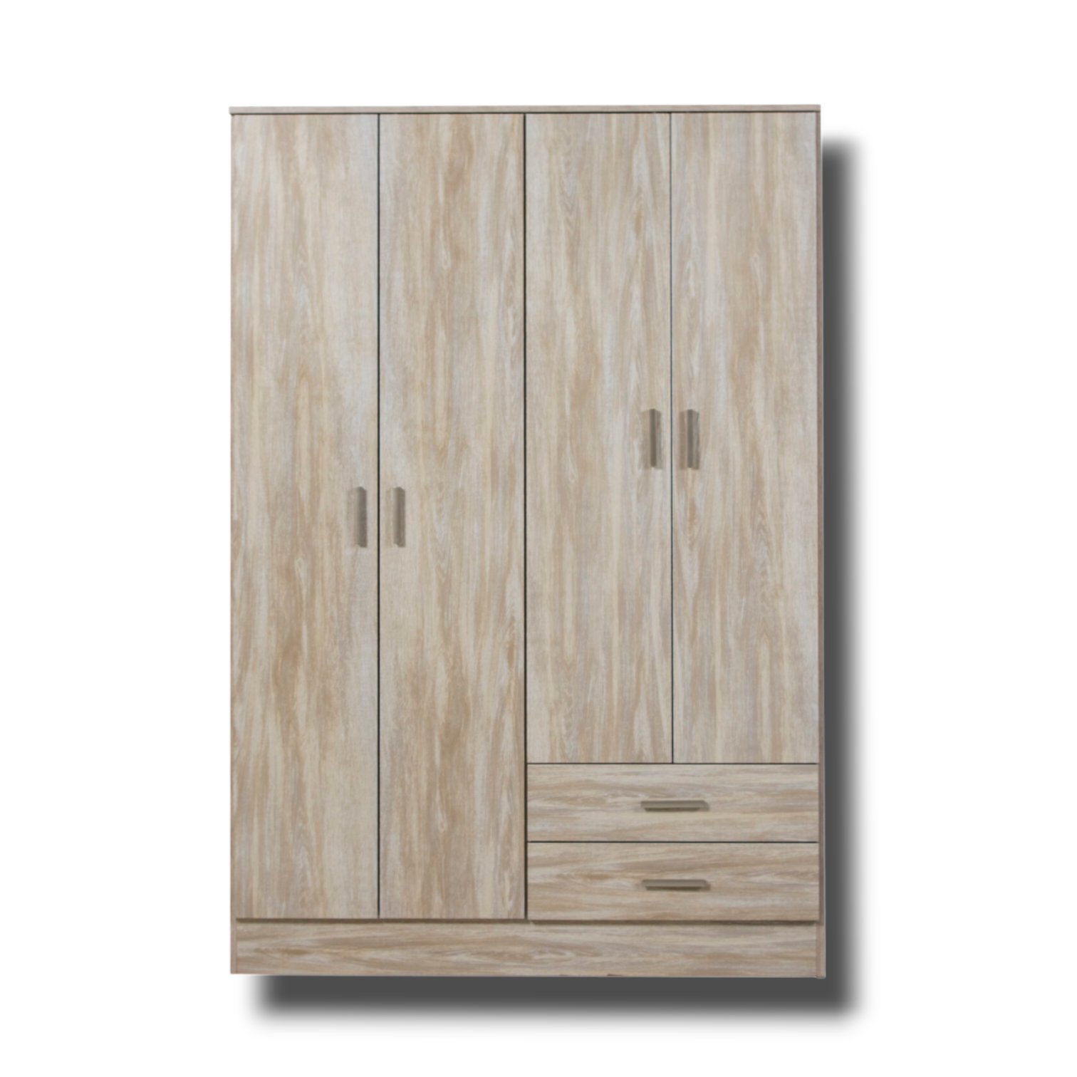 LÍNEA TANA PIU - RICHEZZE Placard - 4 Puertas de abrir - 2 Cajones - 2 Estantes - 1 Perchero Mueble listo para armar, embalado en una sólida caja de cartón Incluye manual de instrucciones de armado CARACTERÍSTICAS