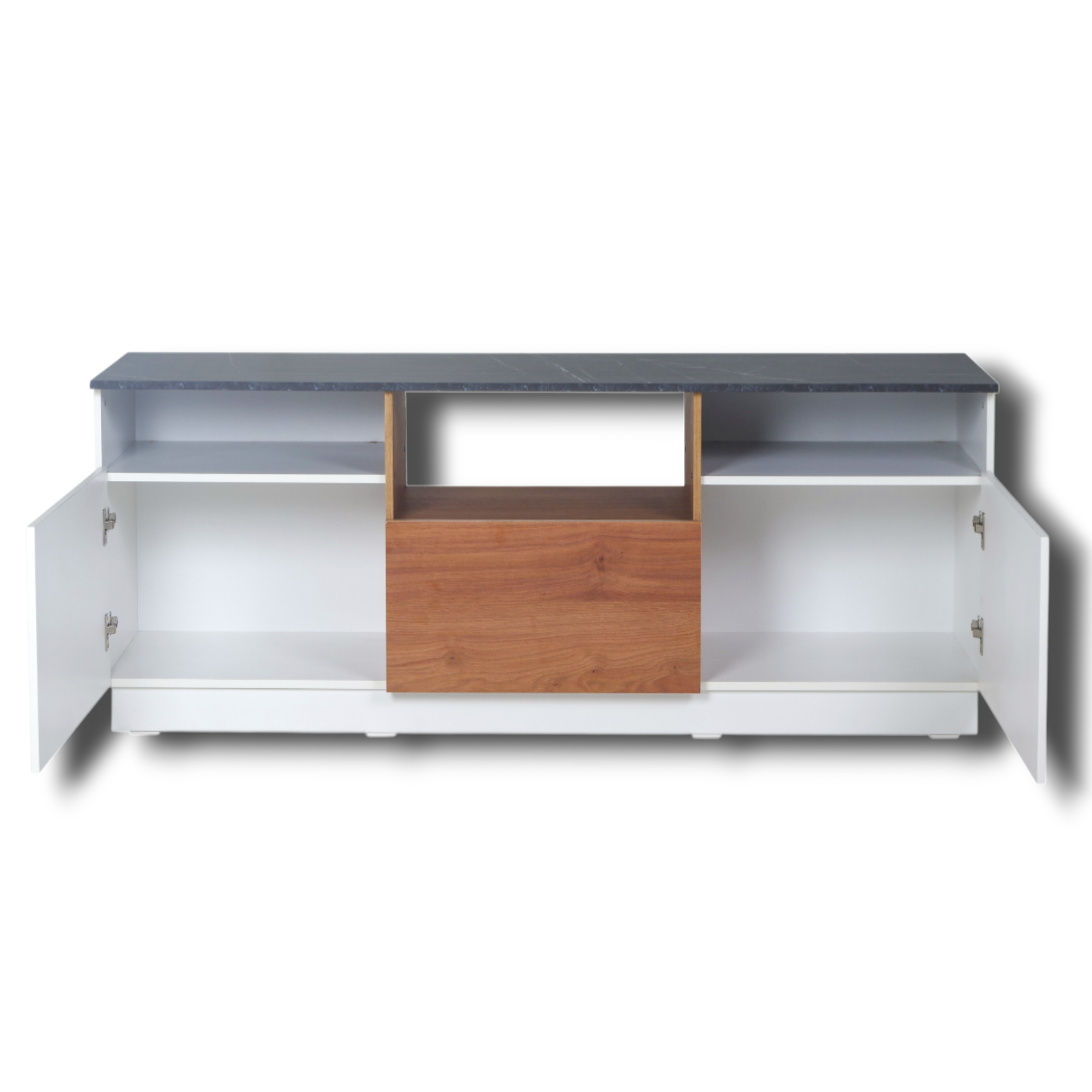 LÍNEA MESINA - RICHEZZE Rack Mundial - 2 Puertas - 1 Cajón Mueble listo para armar, embalado en una sólida caja de cartón Incluye manual de instrucciones de armado CARACTERÍSTICAS