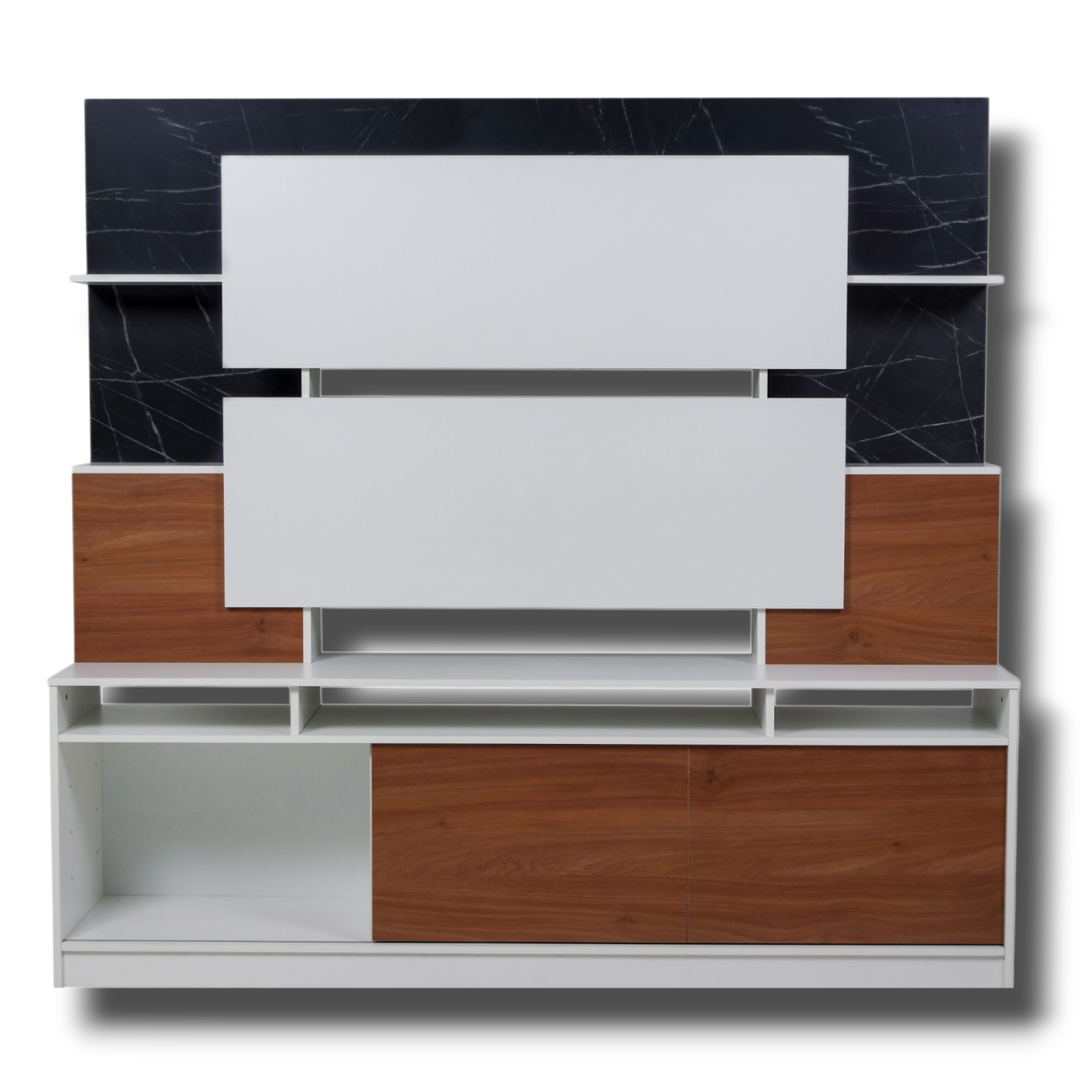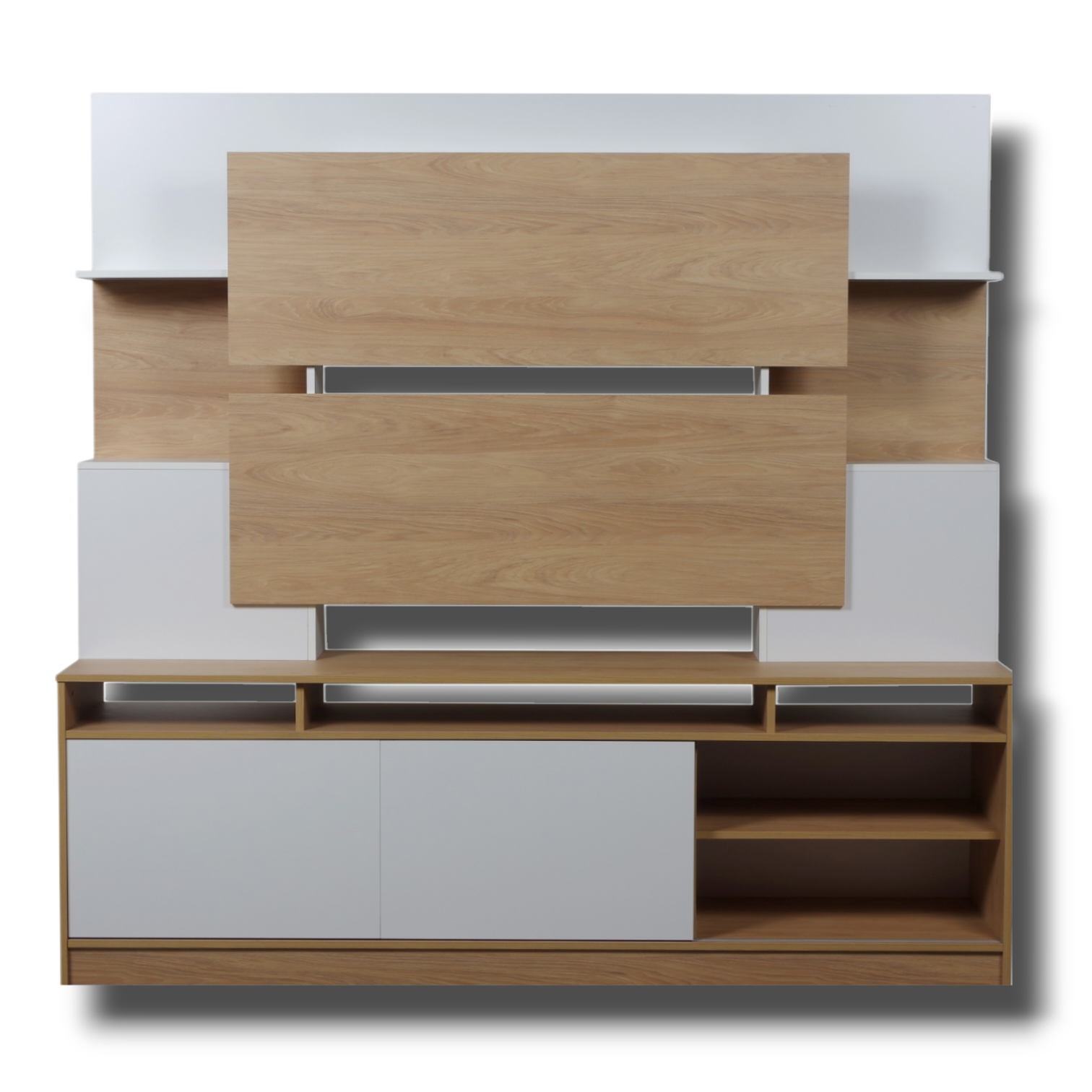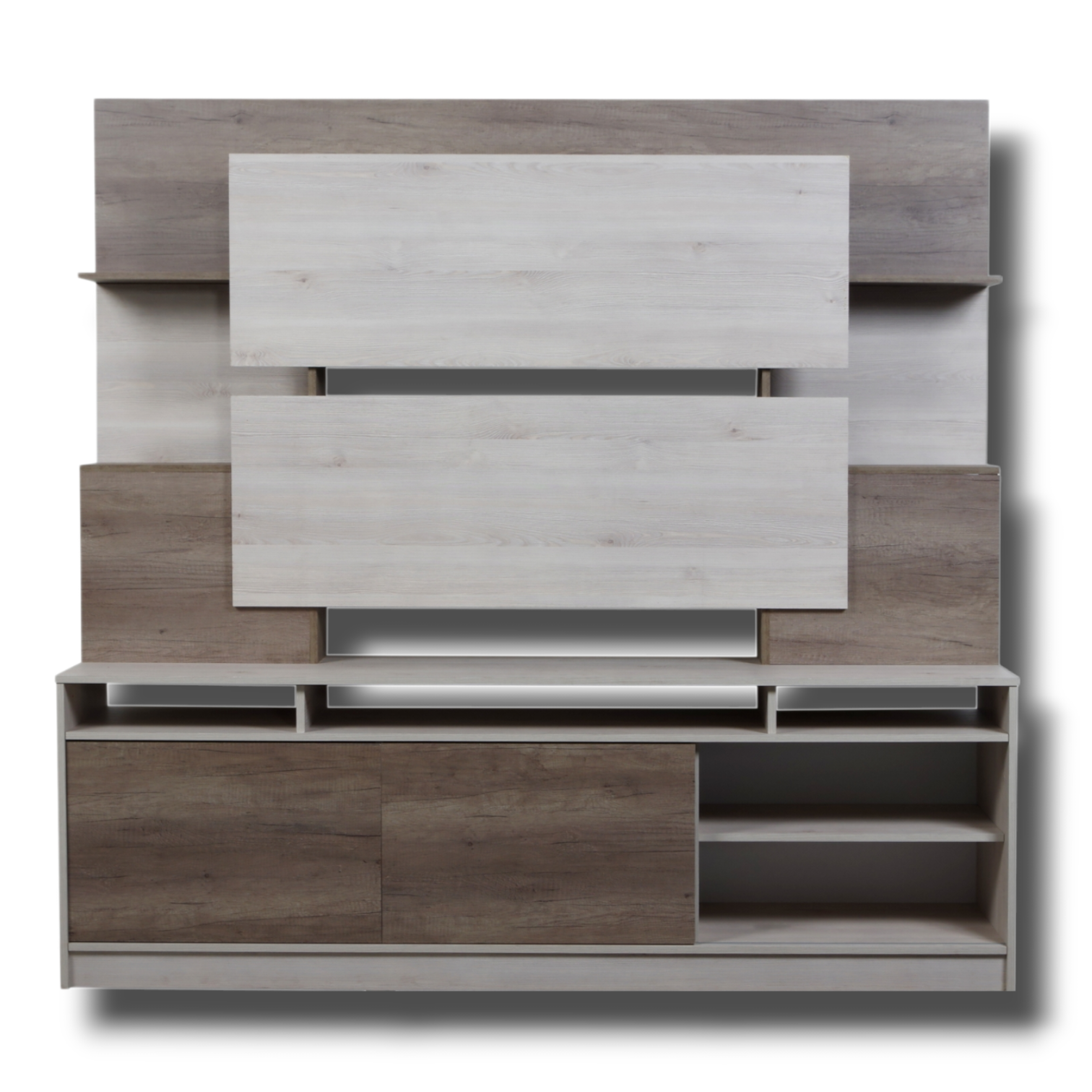 LÍNEA MESINA - RICHEZZE Centro de Entretenimiento - 2 Puertas Mueble listo para armar, embalado en una sólida caja de cartón Incluye manual de instrucciones de armado CARACTERÍSTICAS