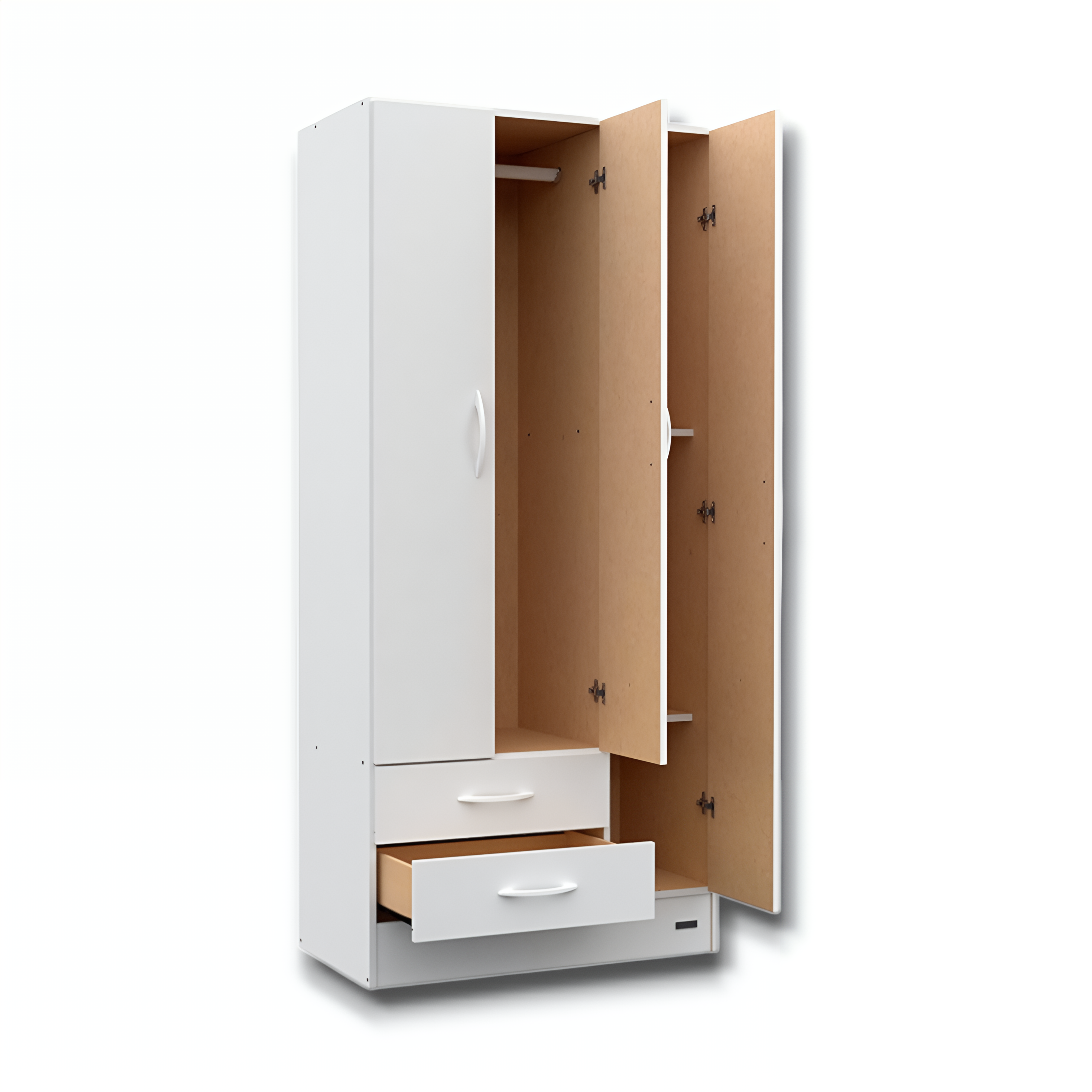 Placard - 3 Puertas de abrir - 2 Cajones - 2 Estantes - 1 Perchero