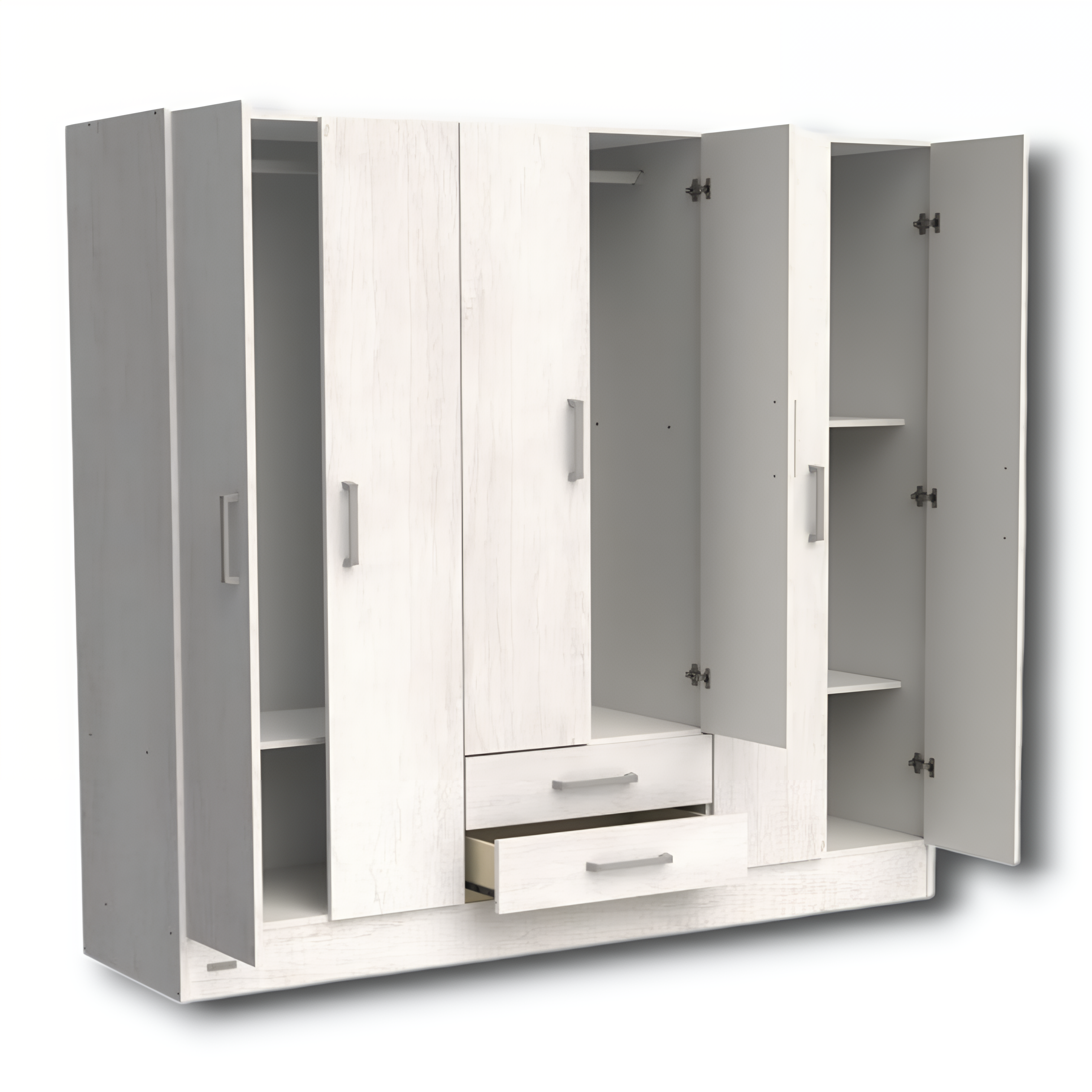 LÍNEA MILENIAL EXPRESS - MOSCONI Placard - 6 Puertas de abrir - 2 Cajones - 3 Estantes - 2 Percheros Mueble listo para armar, embalado en una sólida caja de cartón Incluye manual de instrucciones de armado CARACTERÍSTICAS