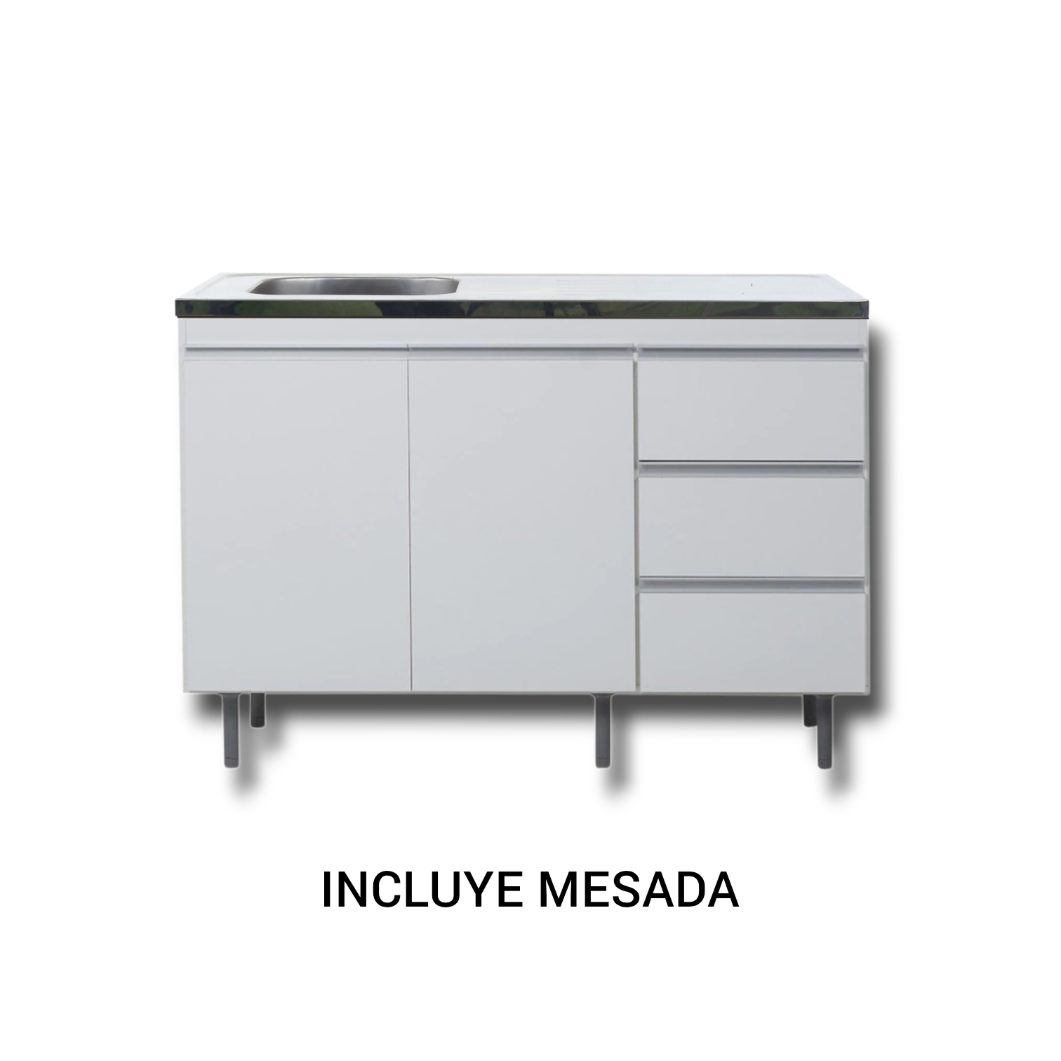 LÍNEA ARCO - RICHEZZE Bajo Mesada - 2 Puertas - 3 Cajones - 1 estante Mueble listo para armar, embalado en una sólida caja de cartón Incluye manual de instrucciones de armado