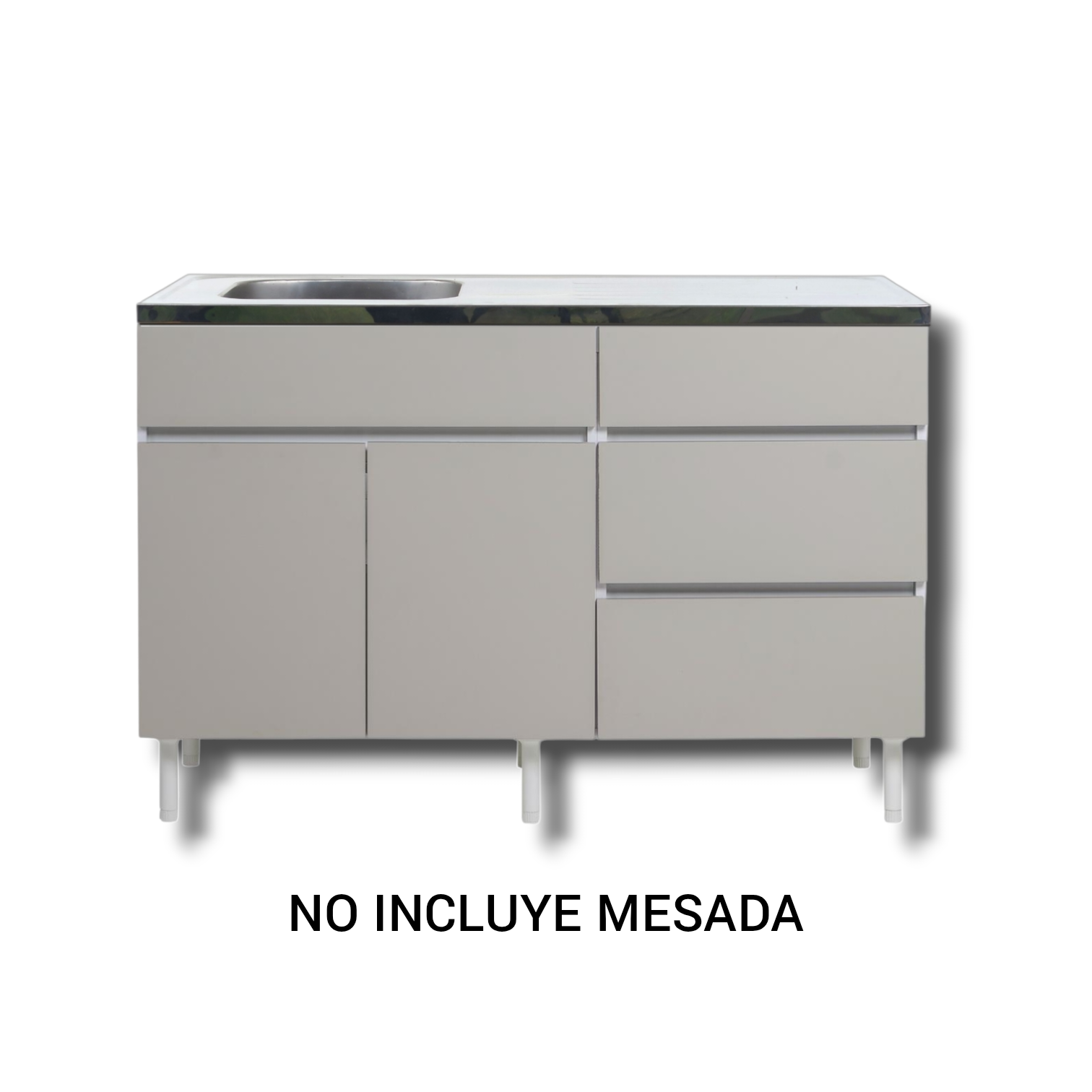LÍNEA LIVORNO - RICHEZZE Bajo Mesada - 2 Puertas - 3 Cajones - 1 estante Mueble listo para armar, embalado en una sólida caja de cartón Incluye manual de instrucciones de armado NO INCLUYE MESADA CARACTERÍSTICAS