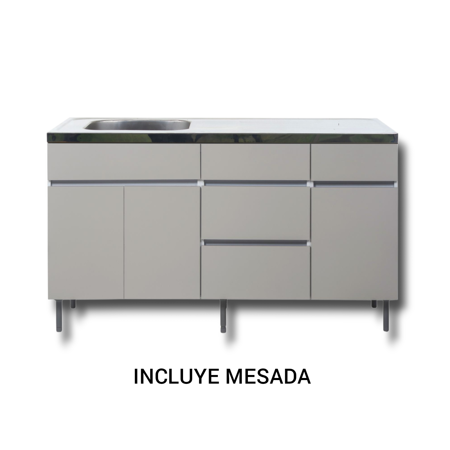 LÍNEA LIVORNO - RICHEZZE Bajo Mesada - 3 Puertas - 3 Cajones - 1 estante Mueble listo para armar, embalado en una sólida caja de cartón Incluye manual de instrucciones de armado