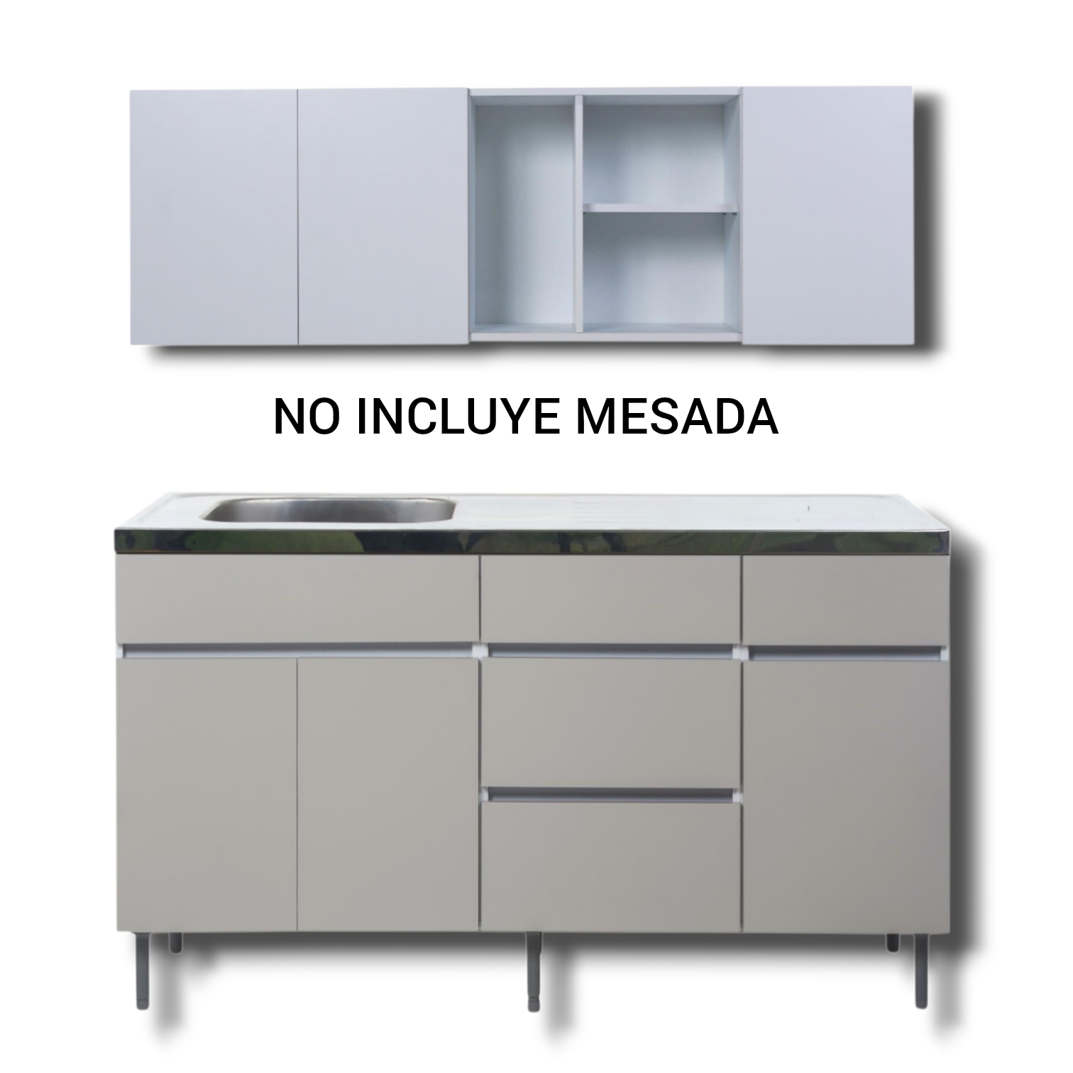 Muebles listo para armar, embalado en una sólida caja de cartón Incluye manual de instrucciones de armado NO INCLUYE MESADA CARACTERÍSTICAS