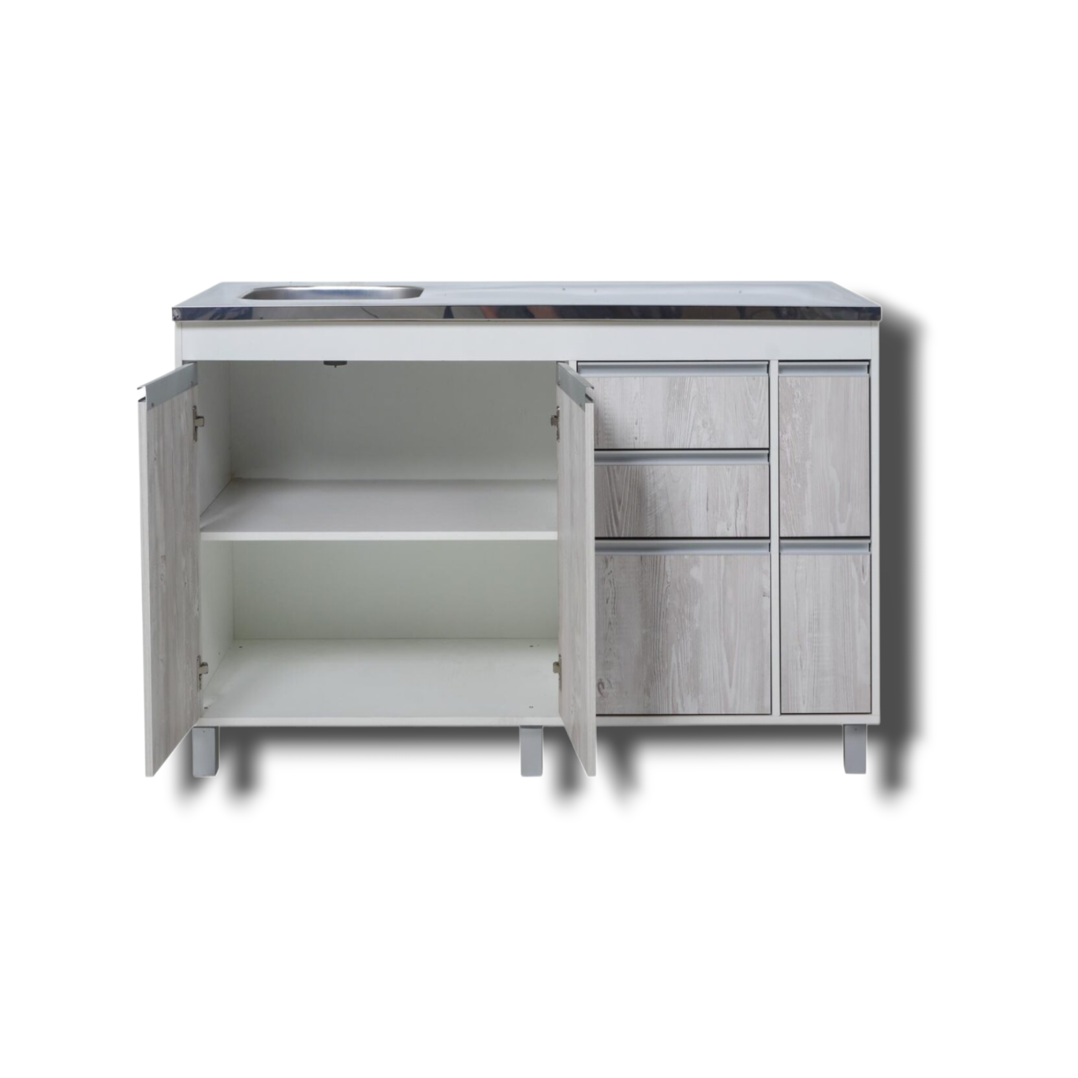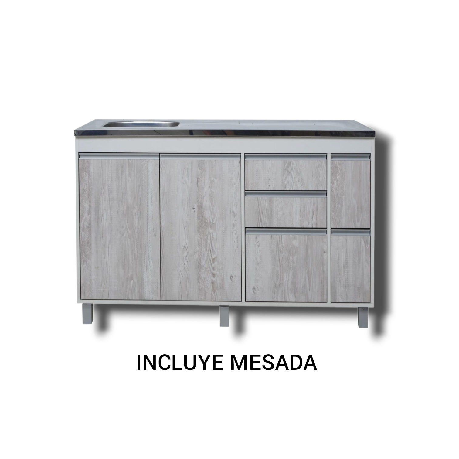 LÍNEA SORRENTO - RICHEZZE Bajo Mesada - 2 Puertas - 3 Cajónes - 2 Cajones Especieros - 1 Estante Mueble listo para armar, embalado en una sólida caja de cartón Incluye manual de instrucciones de armado
