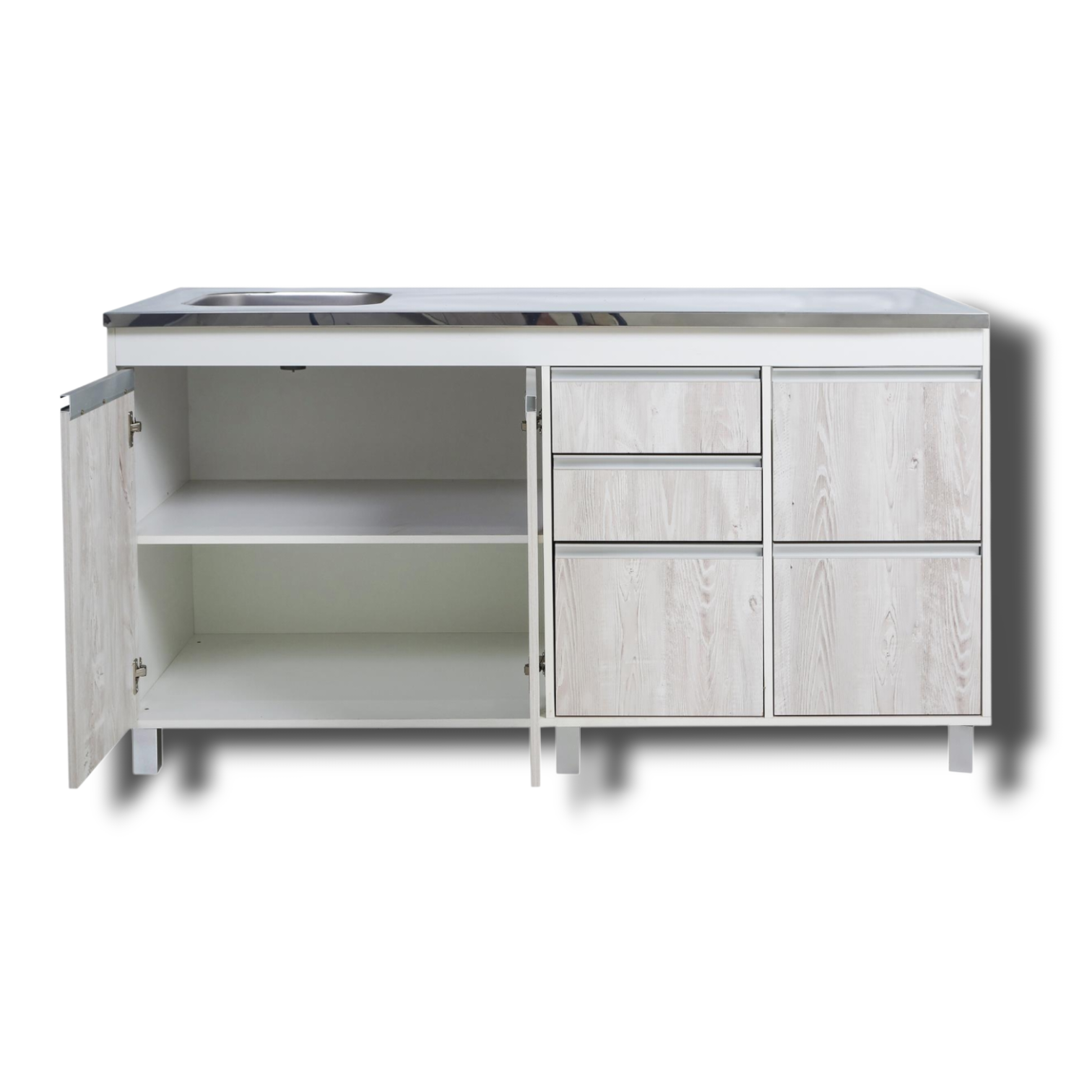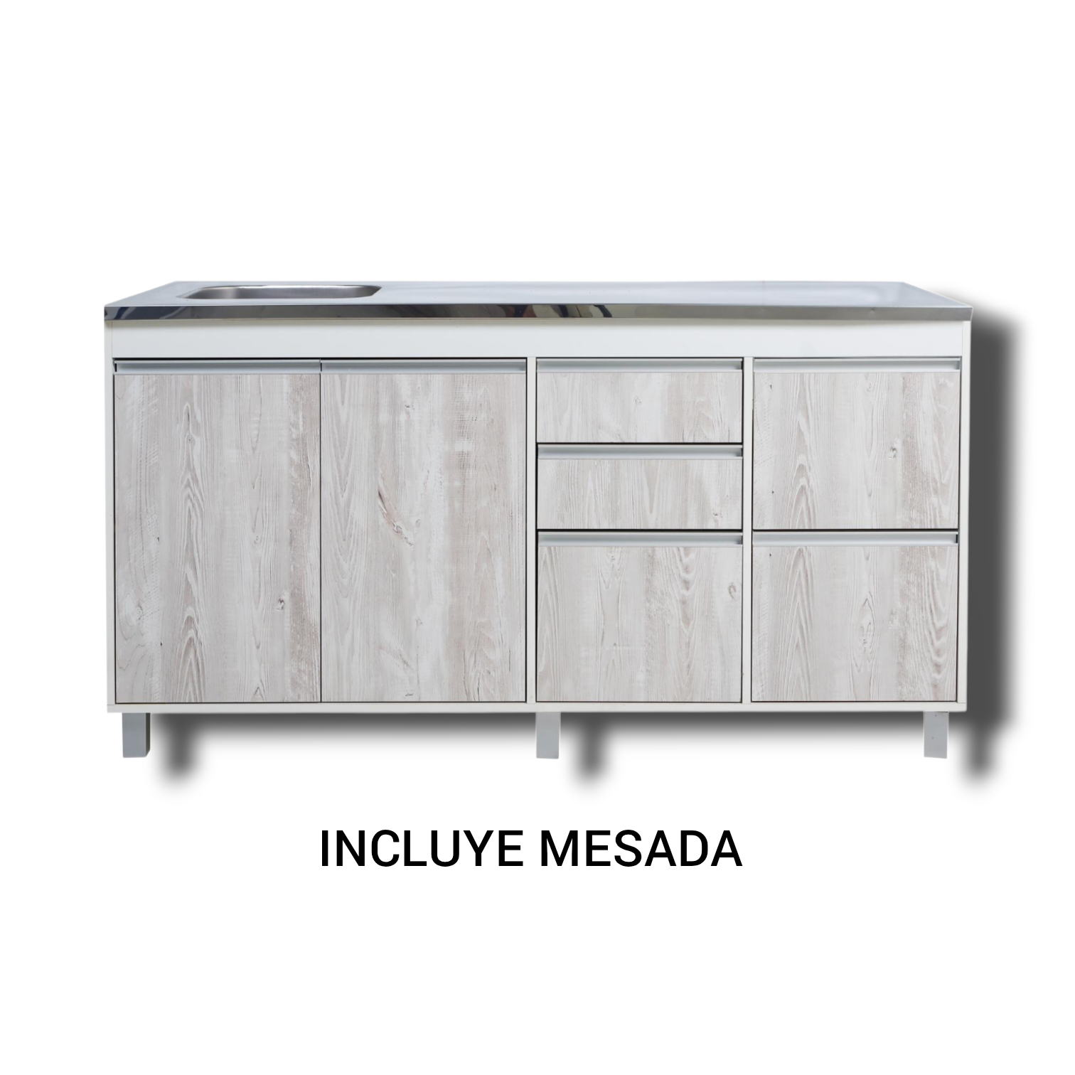 LÍNEA SORRENTO - RICHEZZE Bajo Mesada - 3 Puertas - 5 Cajónes - 1 Estante Mueble listo para armar, embalado en una sólida caja de cartón Incluye manual de instrucciones de armado