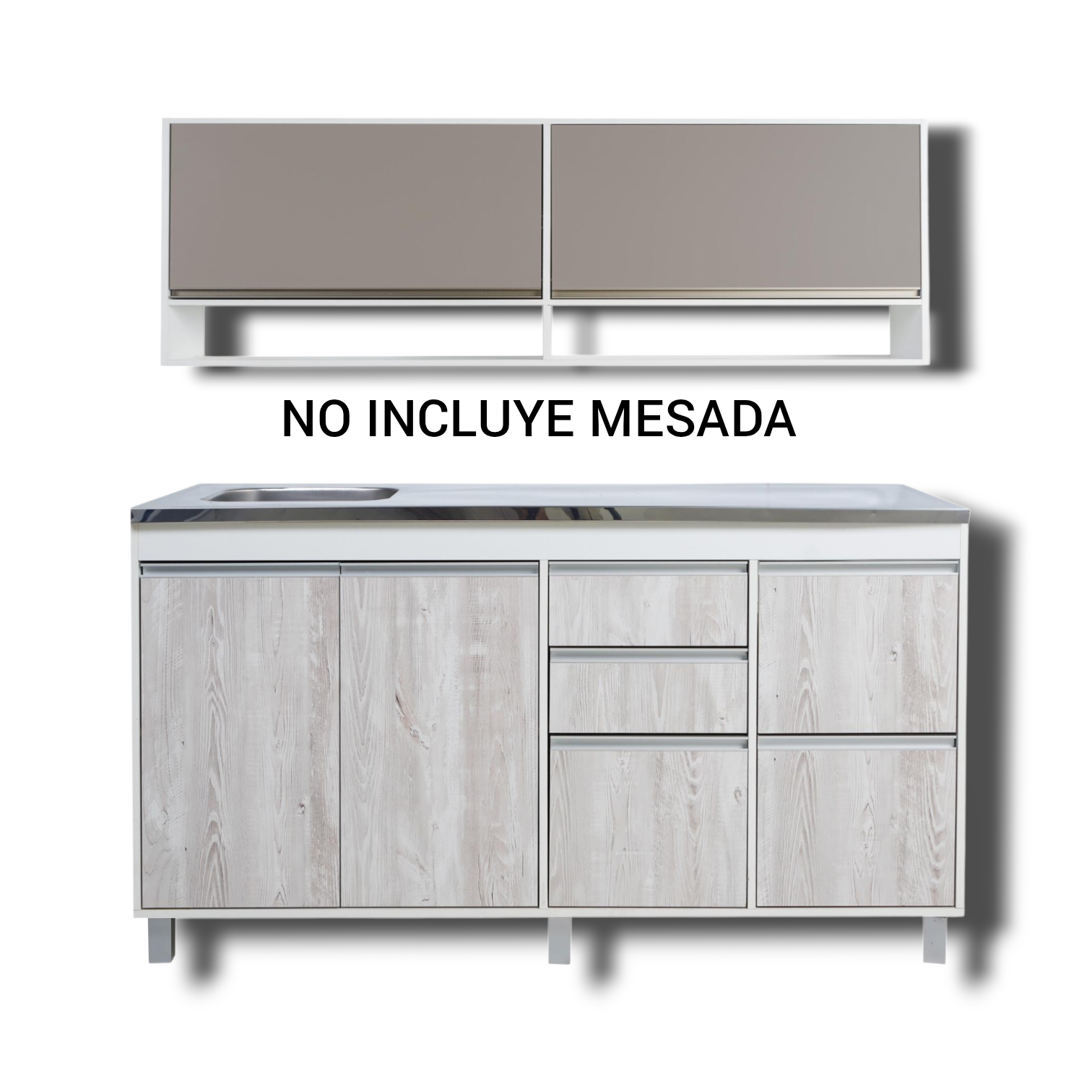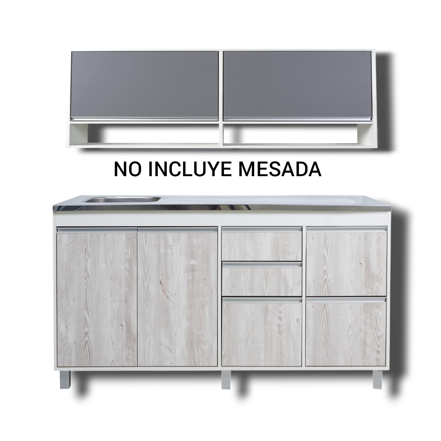 Muebles listo para armar, embalado en una sólida caja de cartón Incluye manual de instrucciones de armado NO INCLUYE MESADA CARACTERÍSTICAS