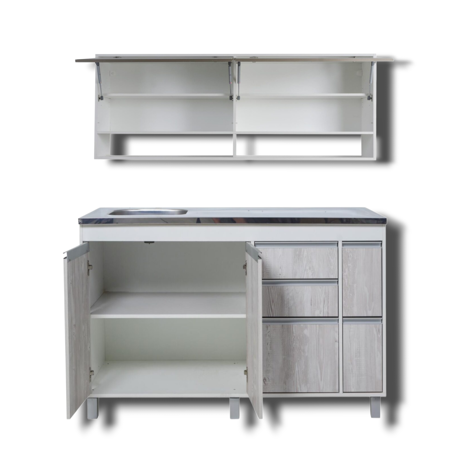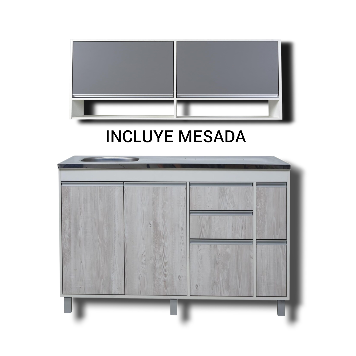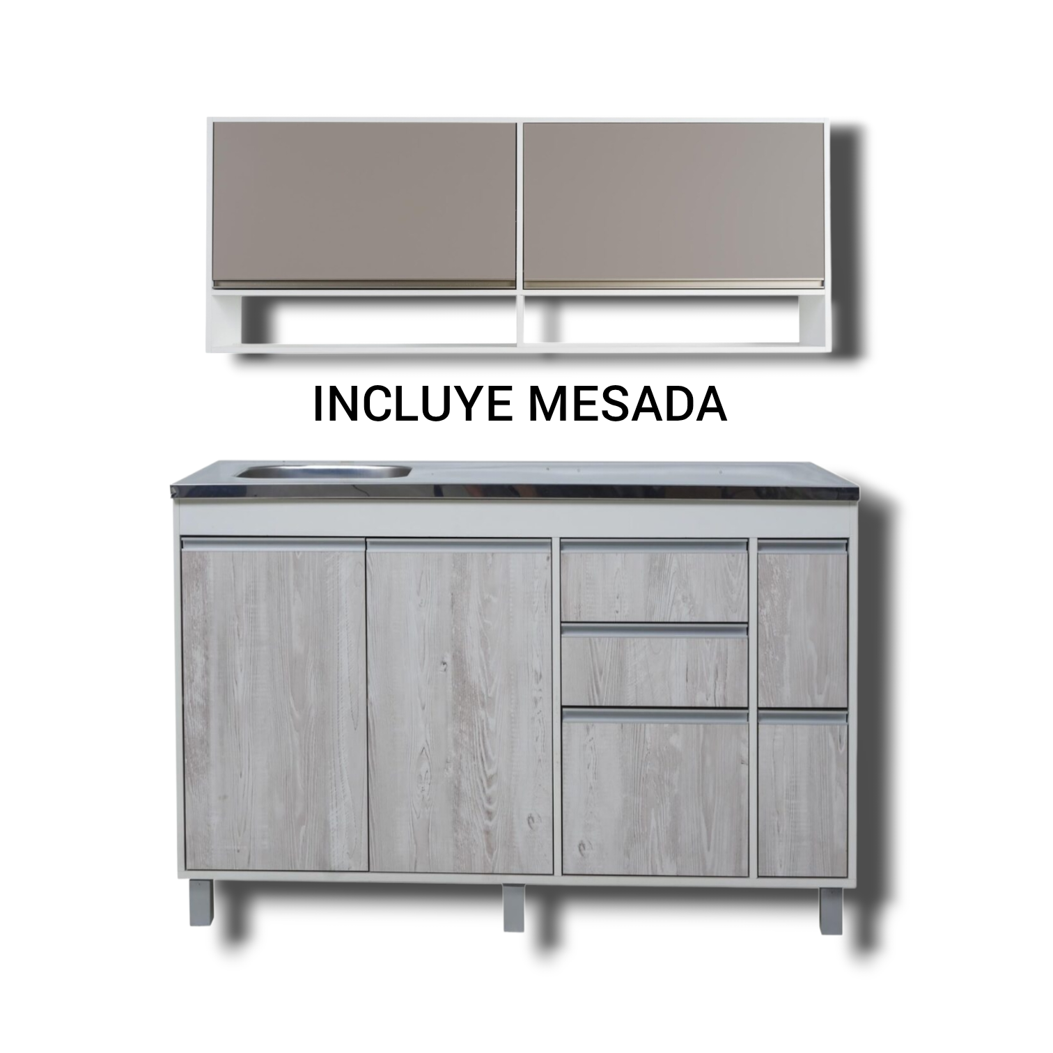 Muebles listo para armar, embalado en una sólida caja de cartón Incluye manual de instrucciones de armado INCLUYE MESADA (PILETA CENTRAL O AL COSTADO) CARACTERÍSTICAS