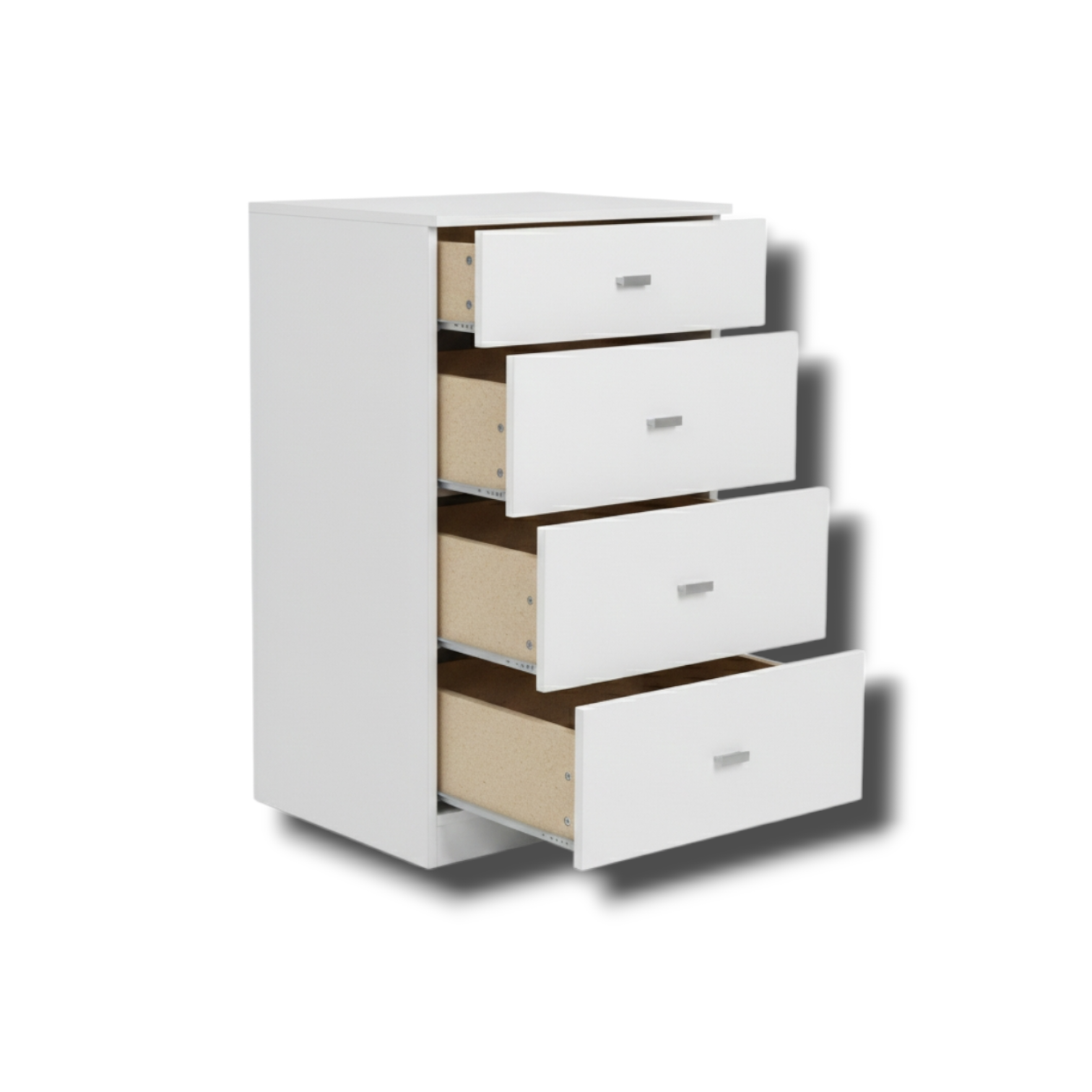 LÍNEA PIU PACK - RICHEZZE Chifonier - 4 Cajones Mueble listo para armar, embalado en una sólida caja de cartón Incluye manual de instrucciones de armado CARACTERÍSTICAS