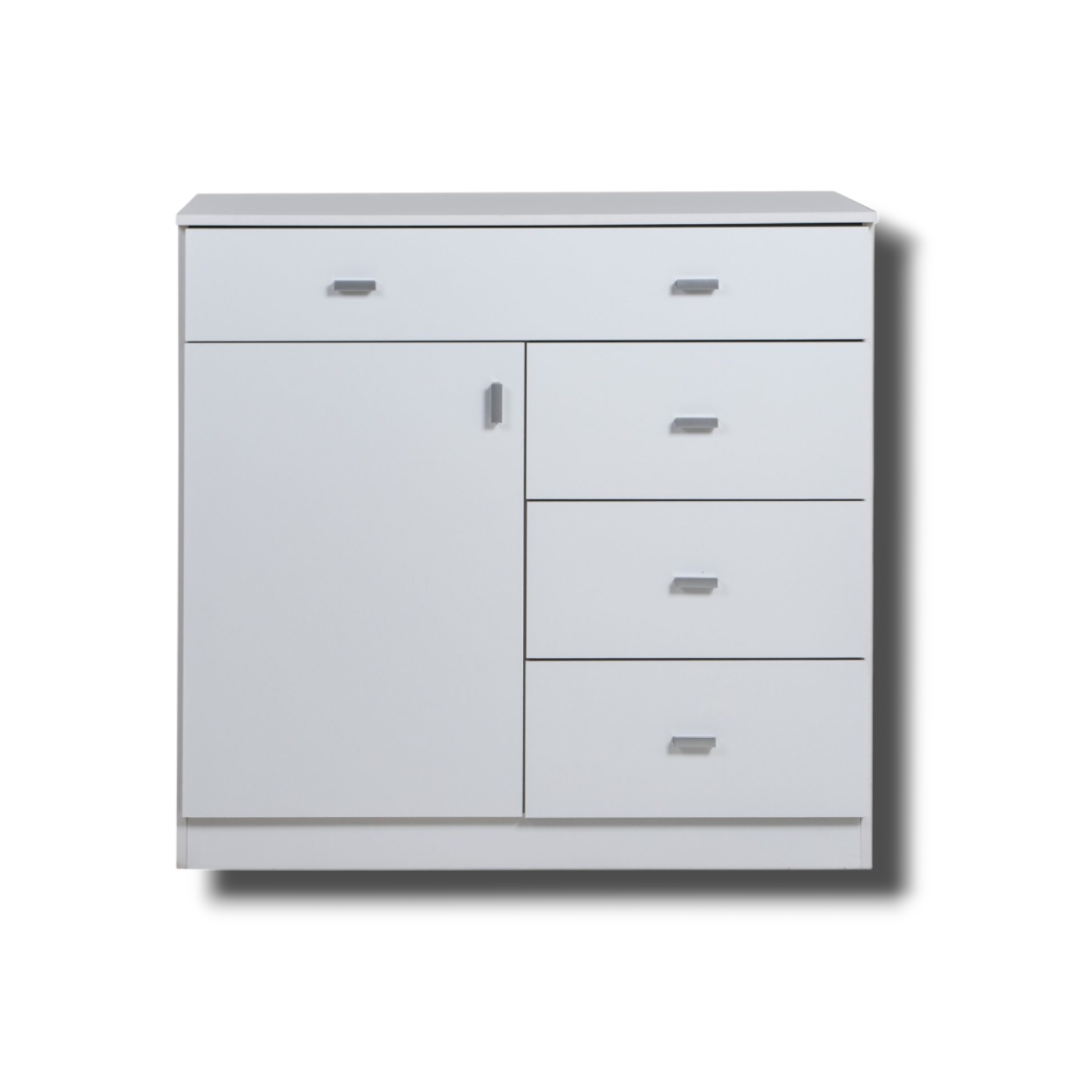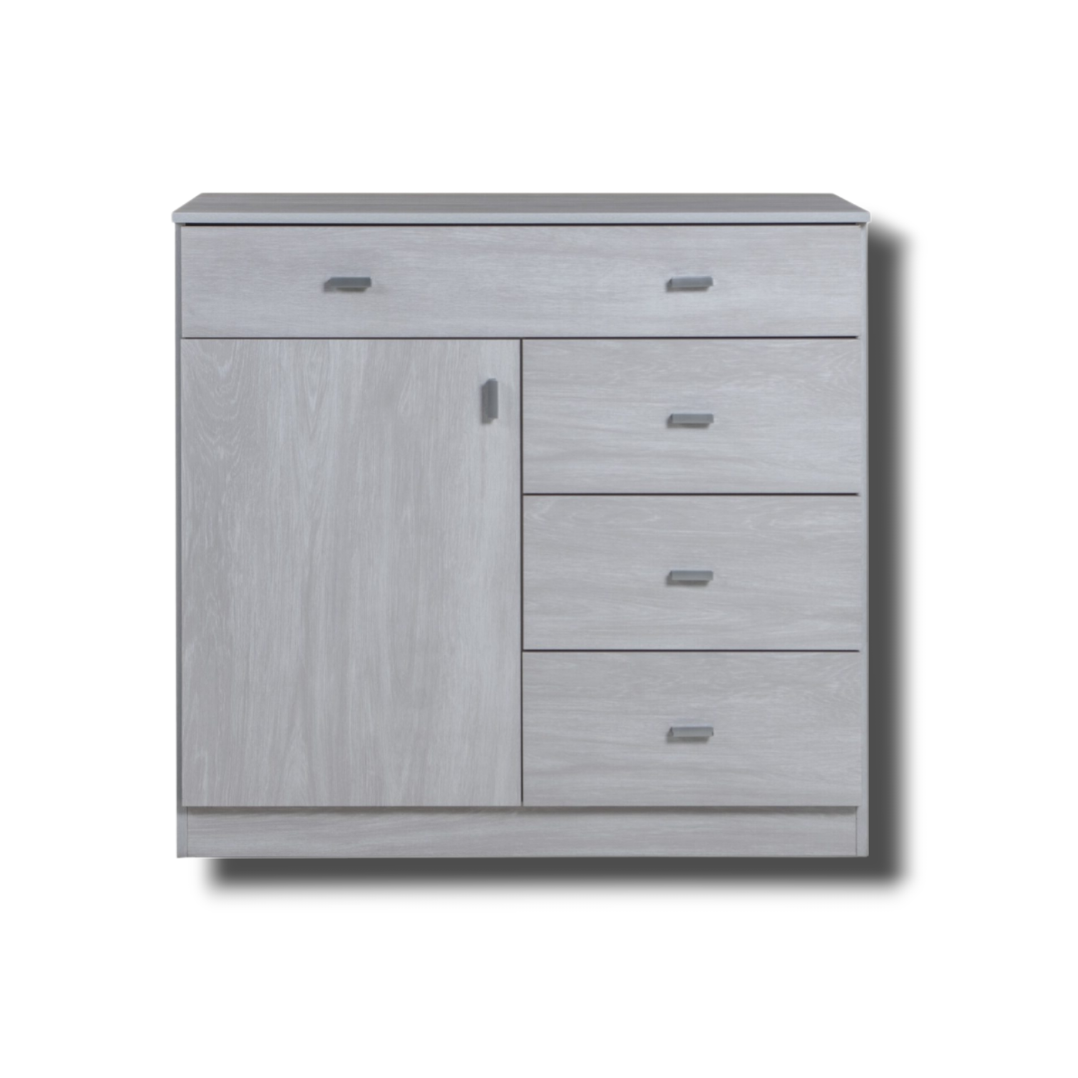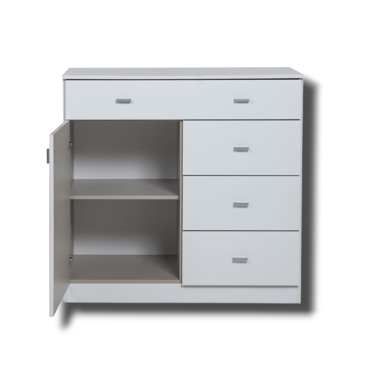 LÍNEA PIU PACK - RICHEZZE Comoda - 1 Puerta - 4 Cajones Mueble listo para armar, embalado en una sólida caja de cartón Incluye manual de instrucciones de armado CARACTERÍSTICAS