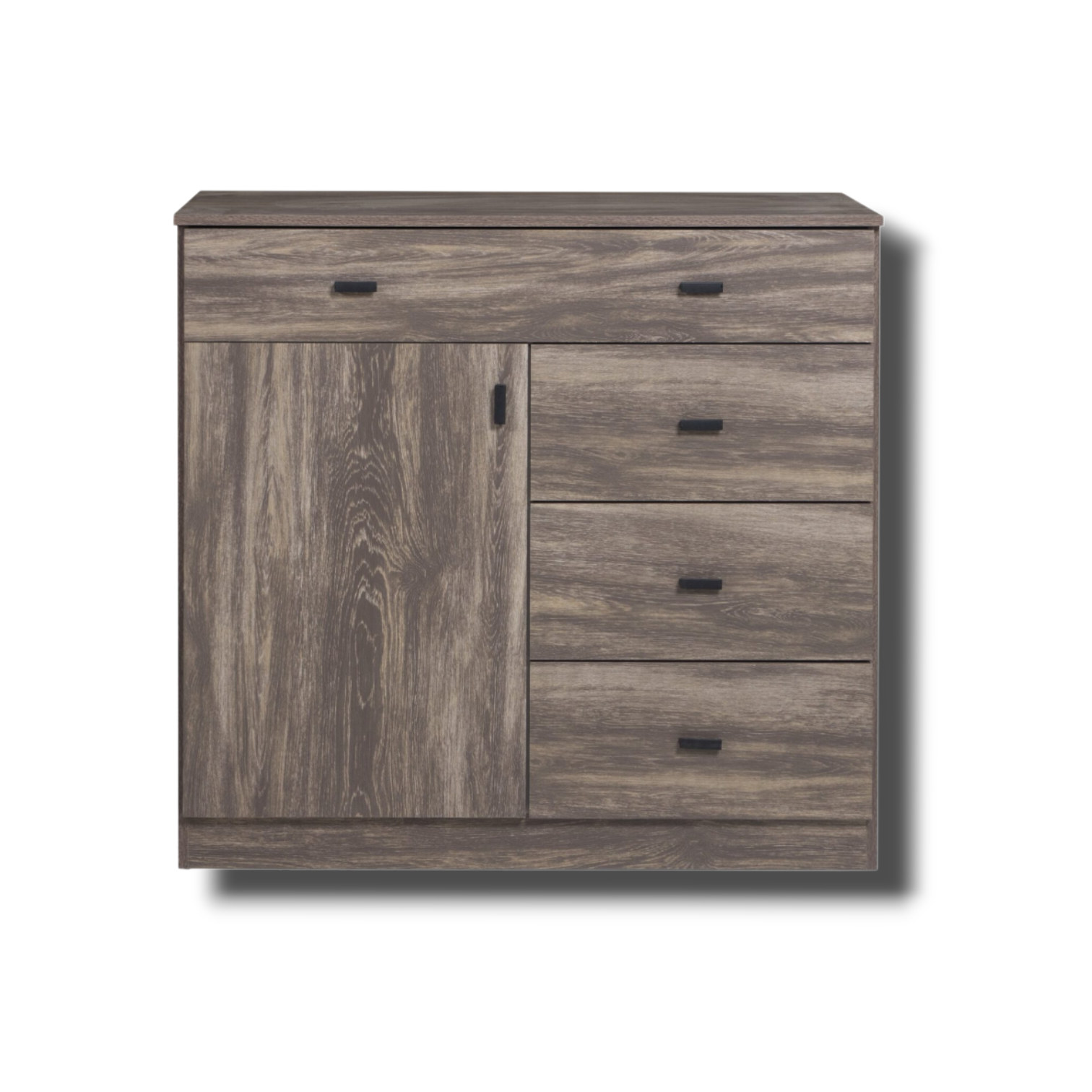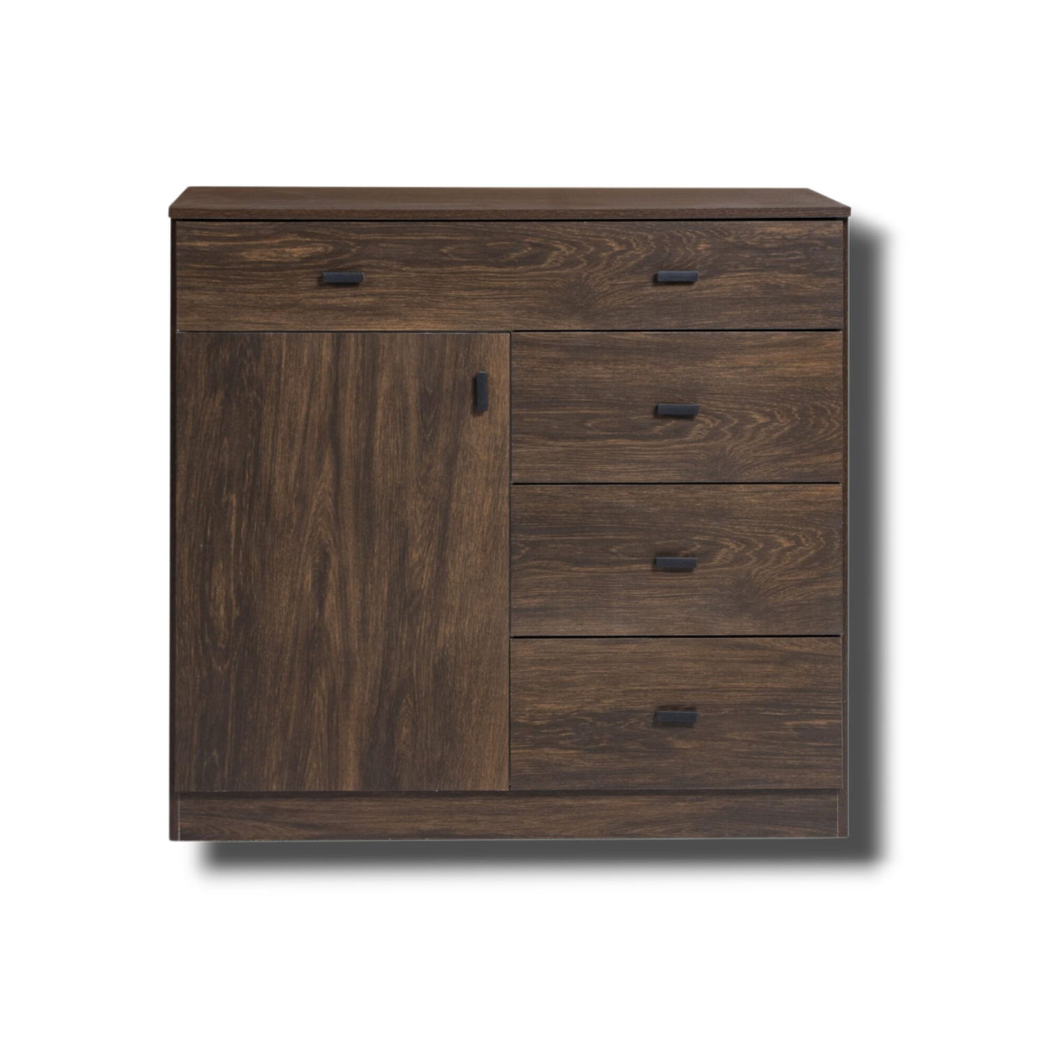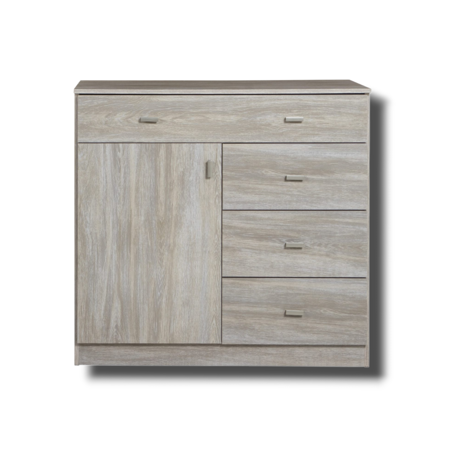 LÍNEA PIU PACK - RICHEZZE Comoda - 1 Puerta - 4 Cajones Mueble listo para armar, embalado en una sólida caja de cartón Incluye manual de instrucciones de armado CARACTERÍSTICAS